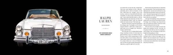 Exquisite photos of each car accompany each story, and since cars naturally hold more detail than watches, there will be more photos in this book–of the cars head-on, of their hood ornaments and wheels, and of course full-body shots. With Hranek’s storytelling, the cars become more than just vehicles for transportation and status symbols; they represent pop-culture moments, pioneering achievements, heirlooms, friendships, and more.