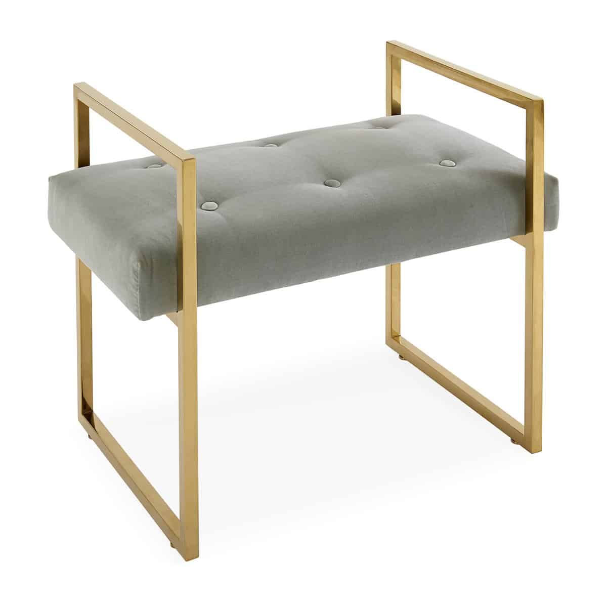 Formal meets fresh, our Beaumont Bench features an architectural yet airy base cradling a cushion in your choice of polished ivory bouclé, light and luxe celadon velvet, bold burnt orange velvet, or a posh and pale lavender velvet. Park this petite seat in front of the fireplace or opposite an armchair.