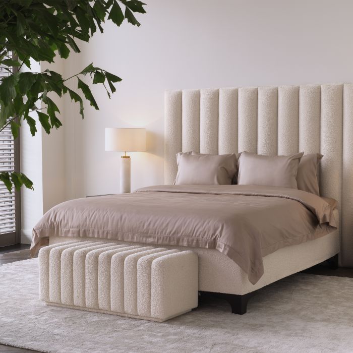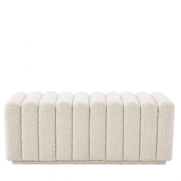 Det är lätt att bli kär i bänk Bente, som skänker charm och värme till ditt vardagsrum eller sovrum. Denna bänk har en klädsel i off-white Bouclé med djupa kanalsömmar, vilket ger dig en mycket bekväm sittkomfort och härligt utseende.