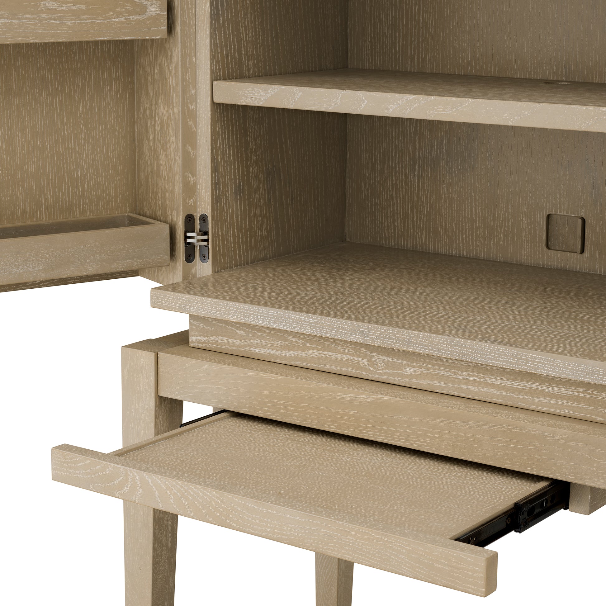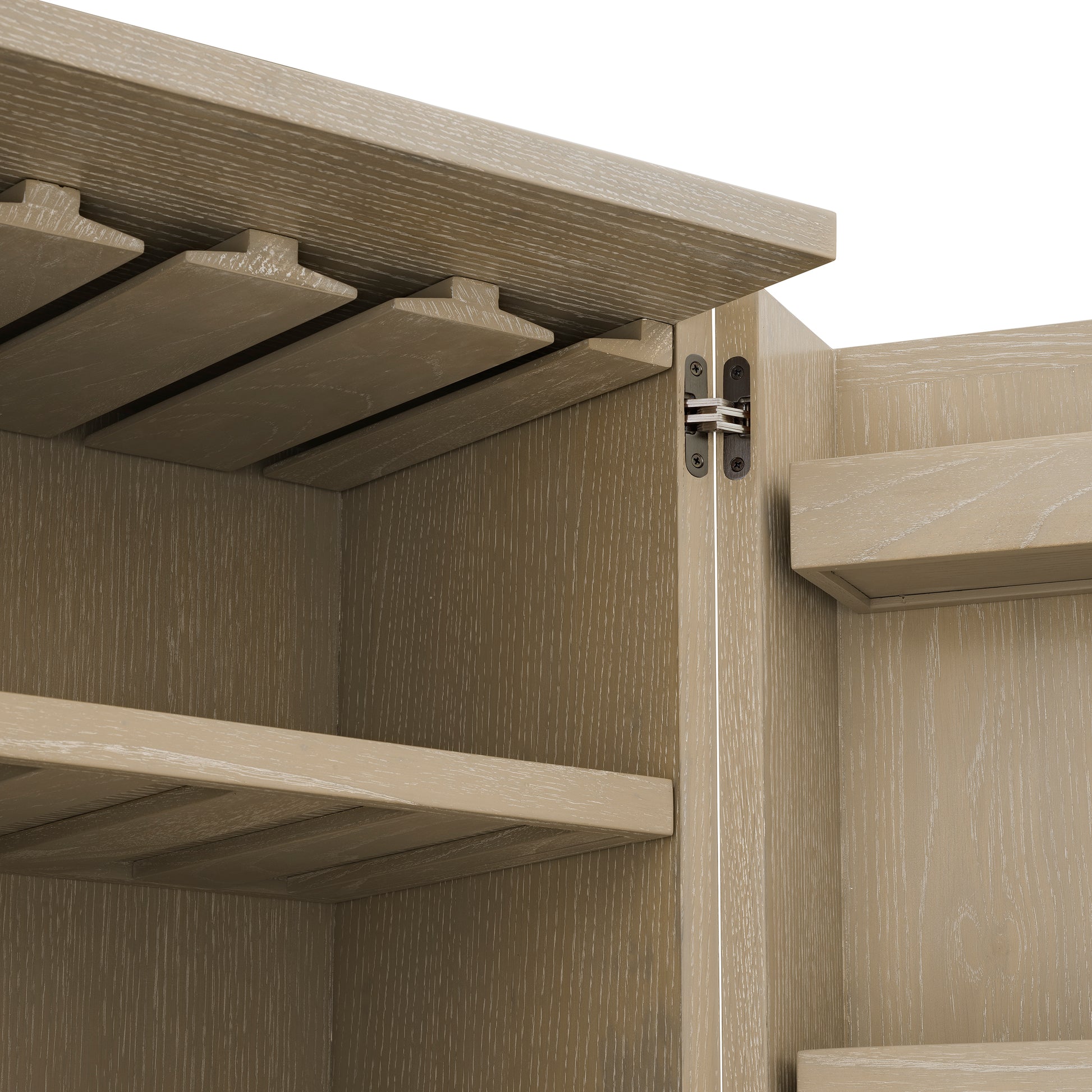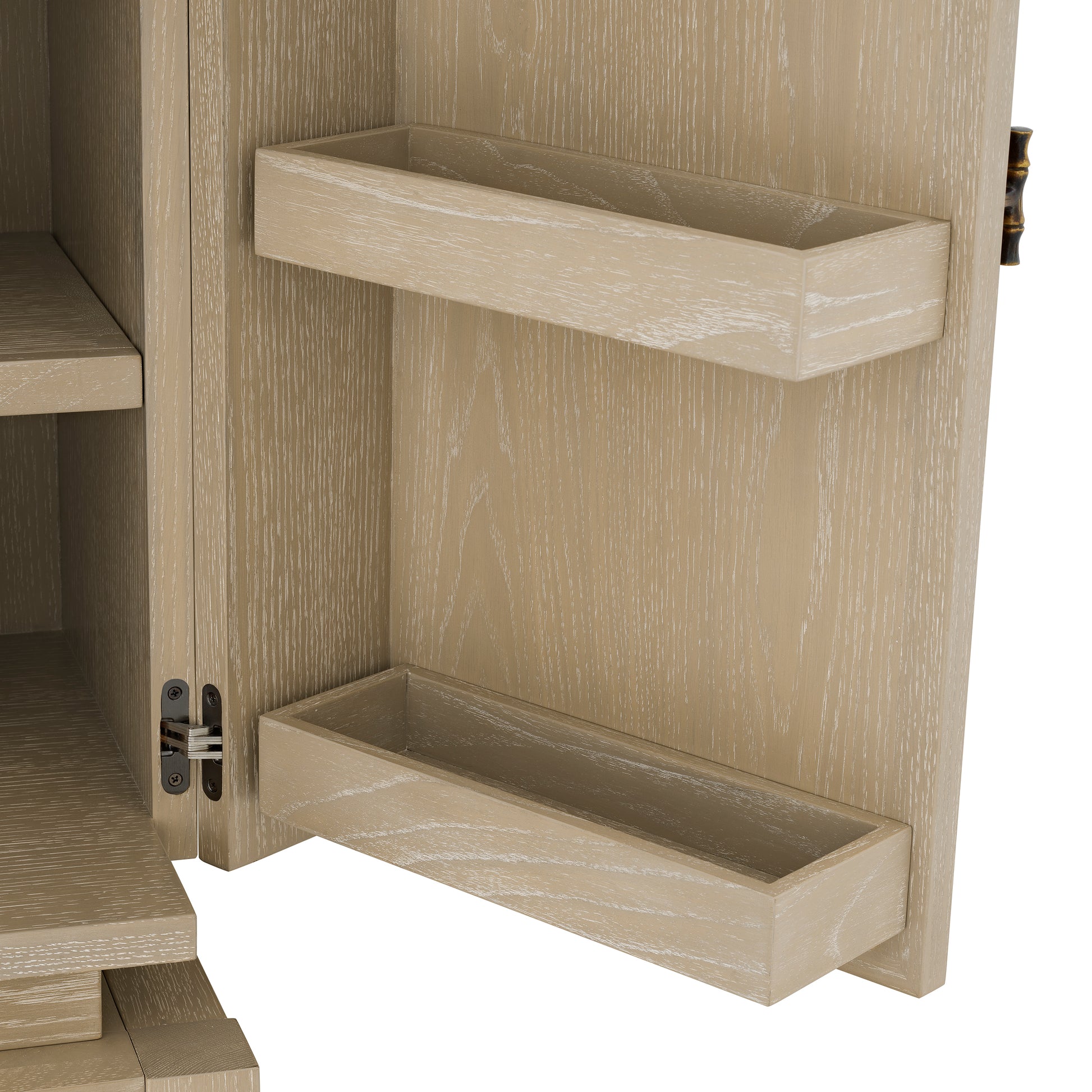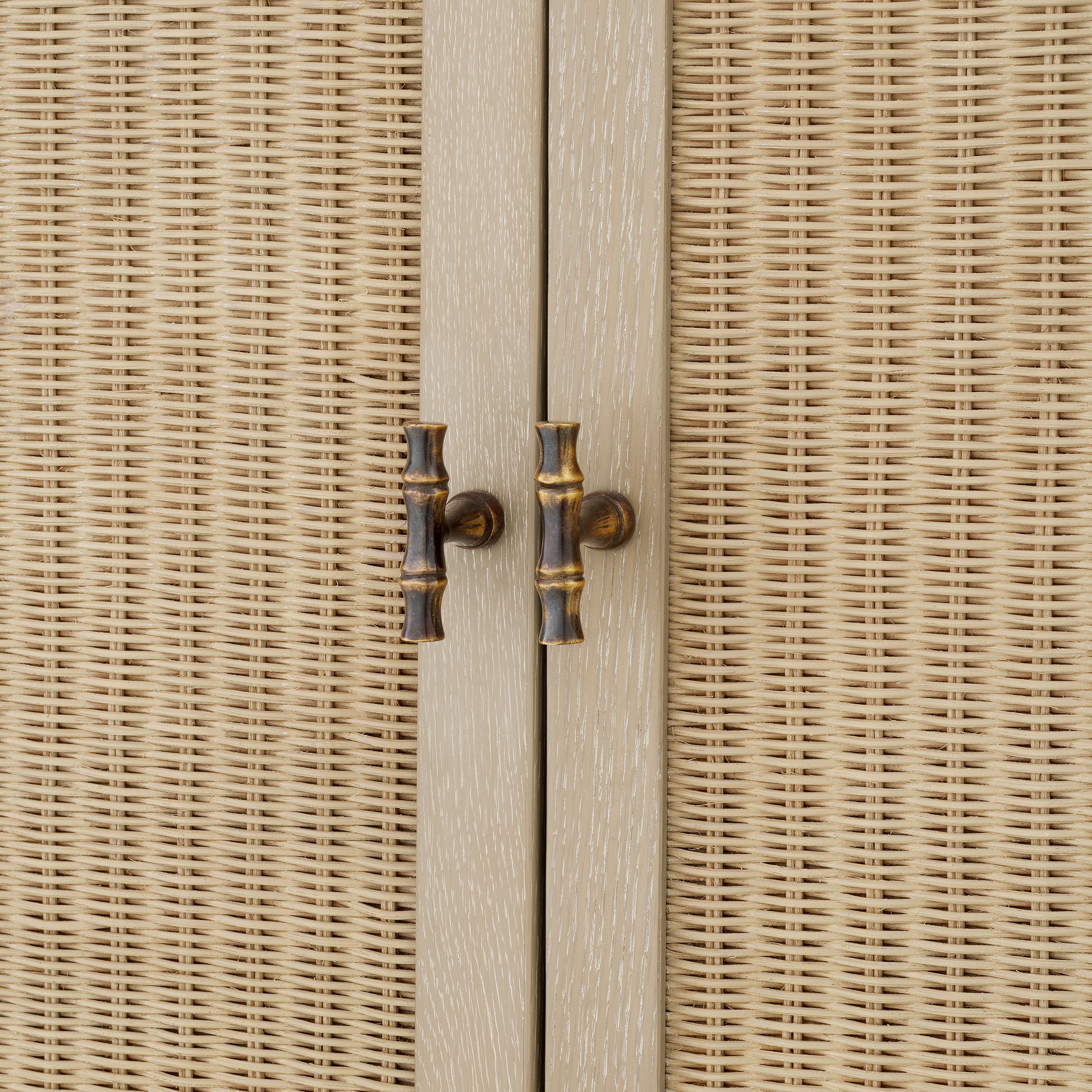 Barskåpet Borchard från Eichholtz kombinerar tvättad ekfanér med handvävd rotting för en naturlig och sofistikerad känsla. Dess taktila ytor och organiska toner skapar en harmonisk och elegant närvaro, perfekt för ett stilfullt och tidlöst inrett hem.