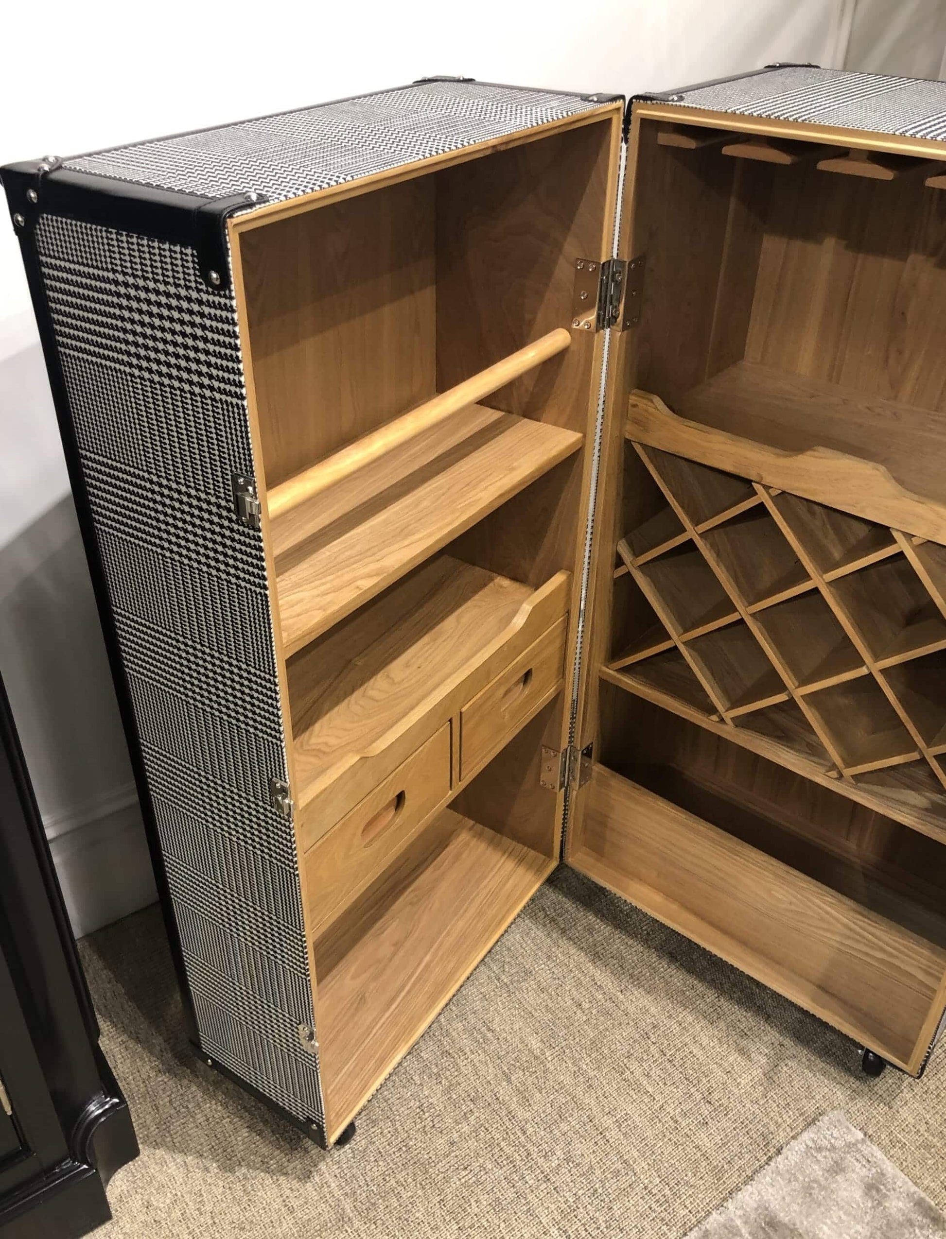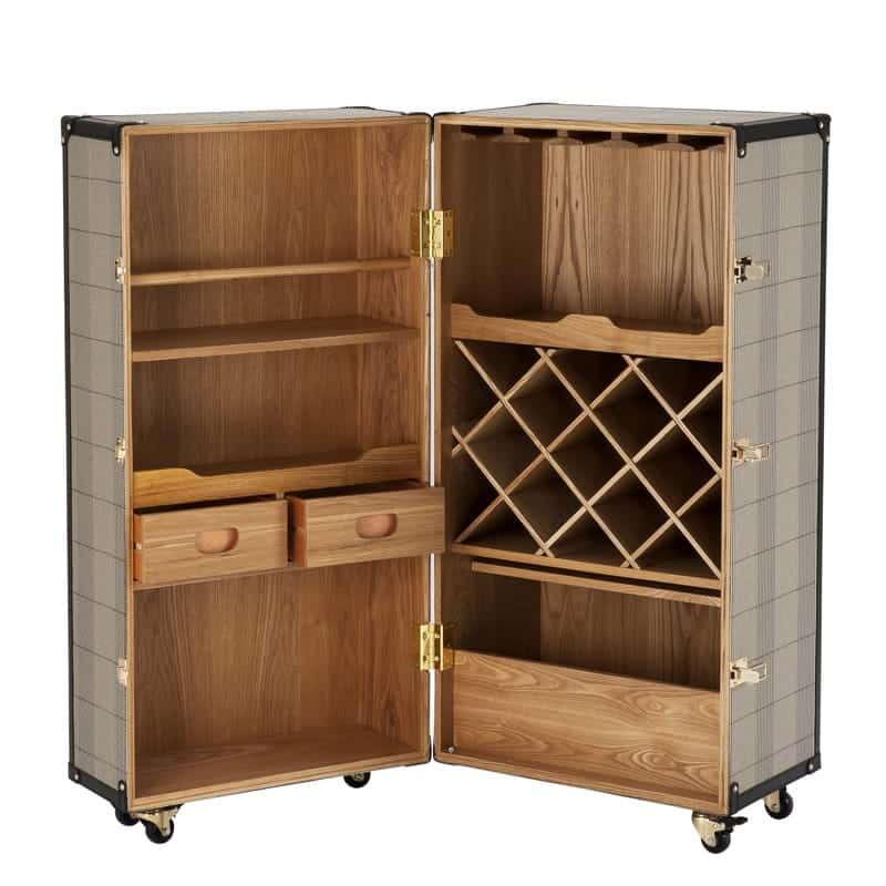 Wine Cabinet Martini Bianco bjuder på ett spektakulärt sätt att servera dryck. Högkvalitativt materialval med t.ex. askträ och mässing, guldfärgade eller kromade beslag. Skåpet går att stänga och har hjul under skåpet så det går att rulla. Praktisk förvaring med lådor samt fack för flaskor och elegant upphängning av glas i dess fot Även känd som Barskåp Dixon och ger en härlig wow-känsla till rummet och ger möjligheten till att på ett imponerande sätt rulla fram sina dyrgripar och bjuda sina gäster på något gott att dricka.