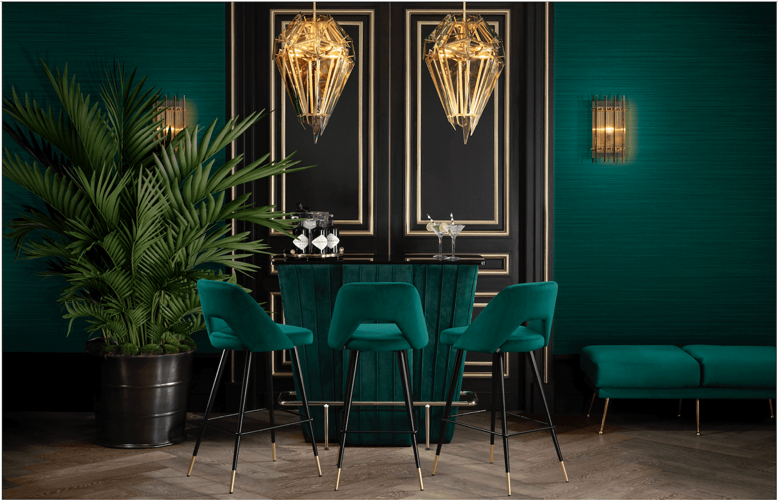 Bar Stool och Counter Stool Avorio från Eichholtz i skön sammet och svarta/mässingsfärgade ben. Annorlunda och mycket skön, lyxig och elegant barstol passande heminredningar och miljöer med klass och stil. Posh och elegant!
