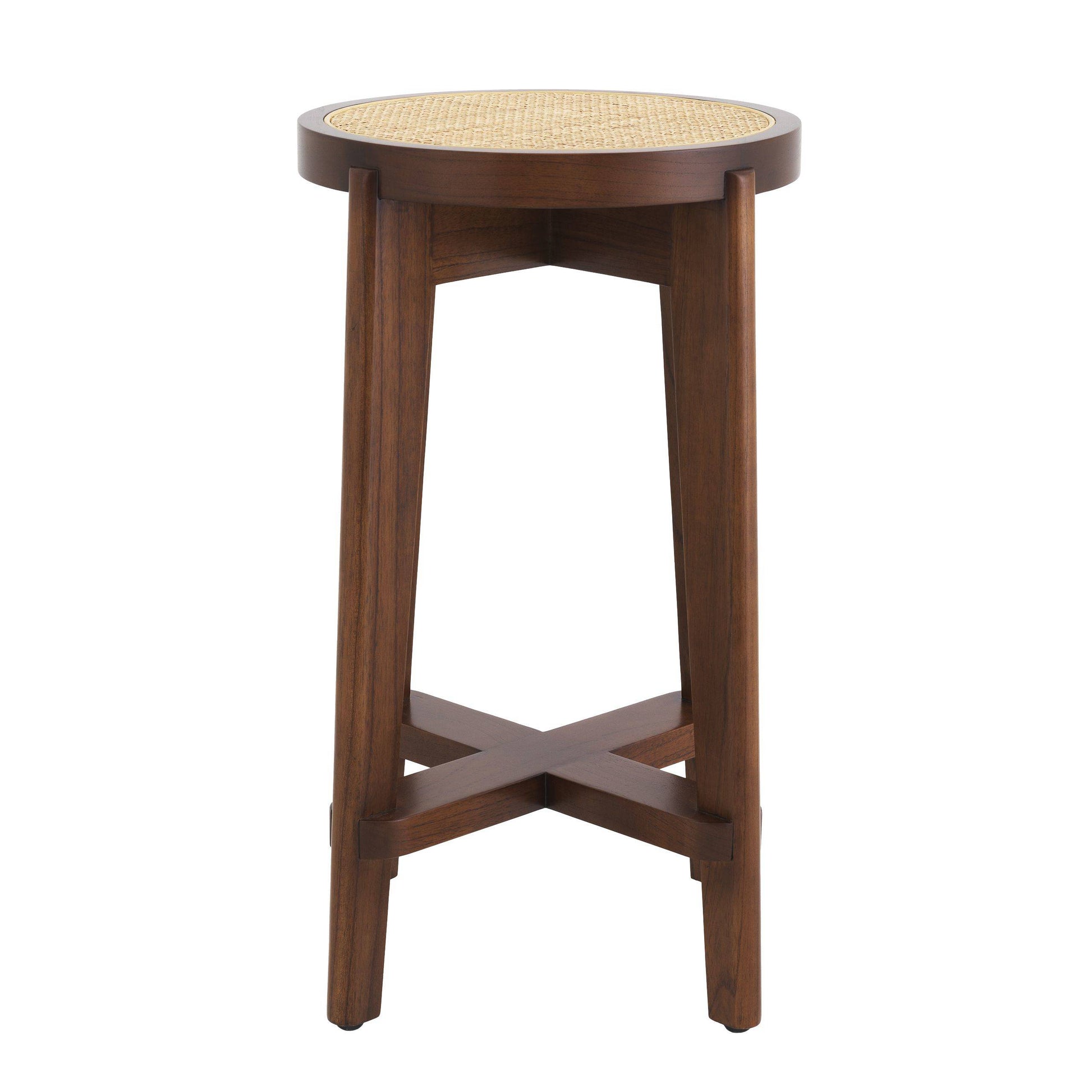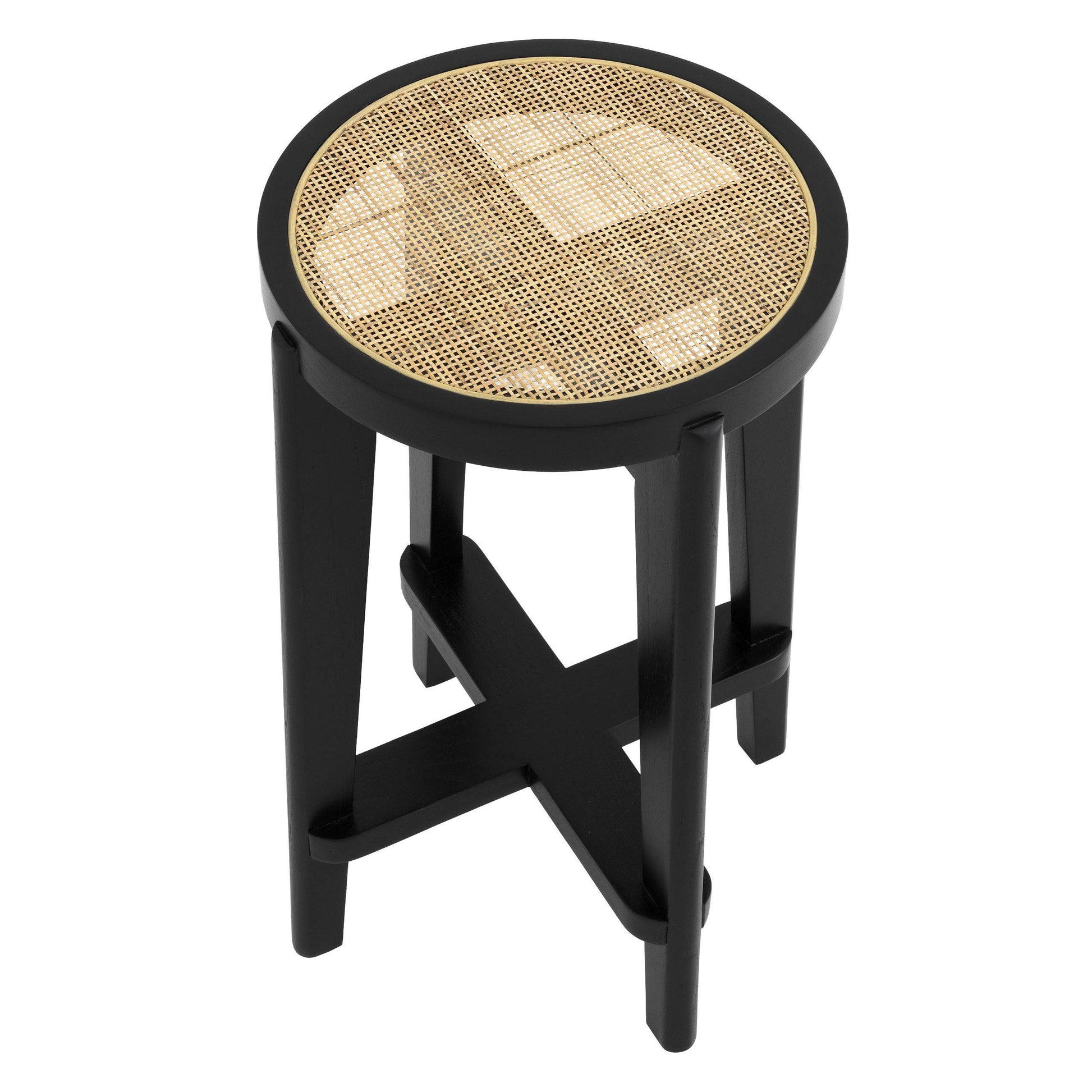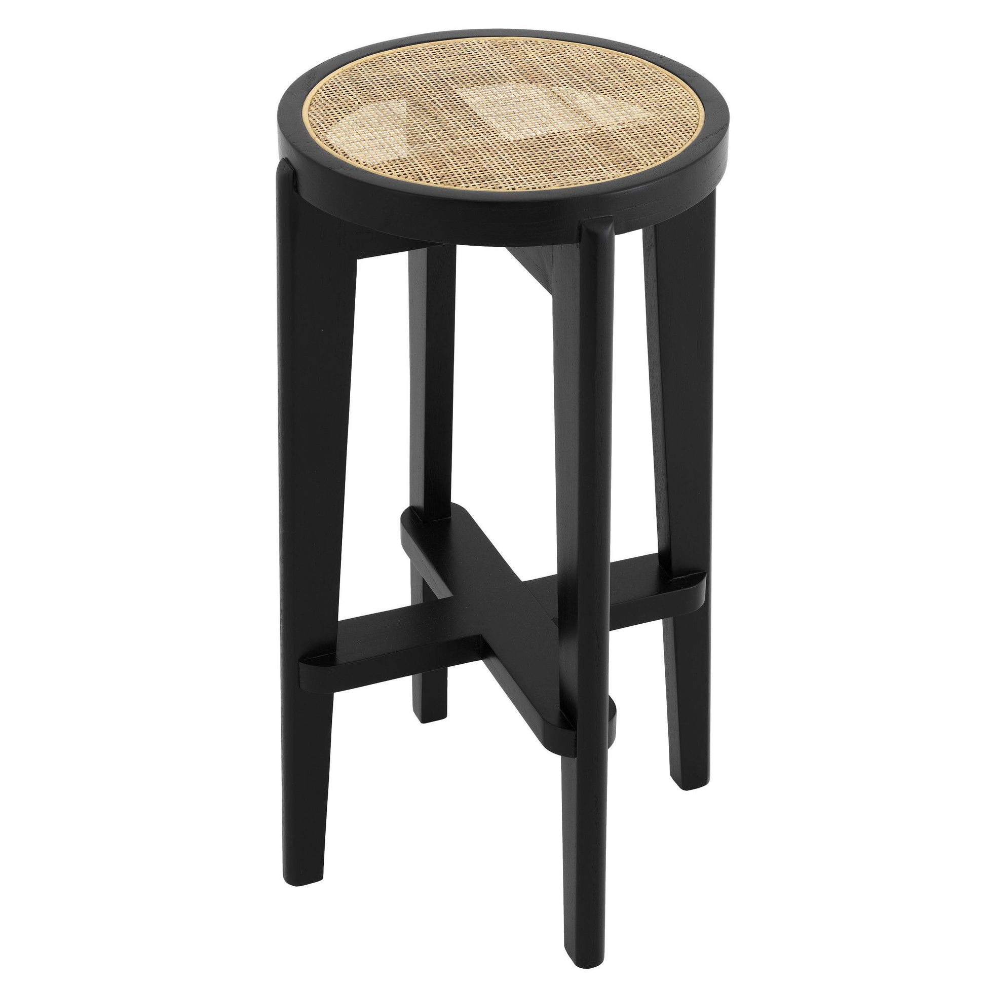 Denna klassiska barstol är inspirerad av Pierre Jeannerets ikoniska designmöbler och kombinerar kvalitet med minimalistisk design på ett underbart sätt. Denna snygga barstol är tillverkad av massivt trä och sitsen är gjord i handknuten rotting vilket gör varje stol unik i sin känsla och utseende.
