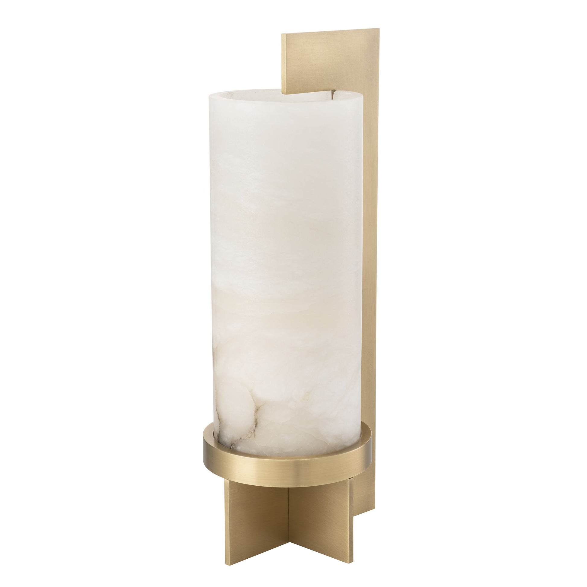 Den är idealisk för användning som sänglampa, men den fungerar lika bra i ett vardagsrum. Monterad på en geometrisk metallbas med en antik mässingsfinish, sprider ljuset genom dess cylindriska, genomskinliga alabaster din interiör.