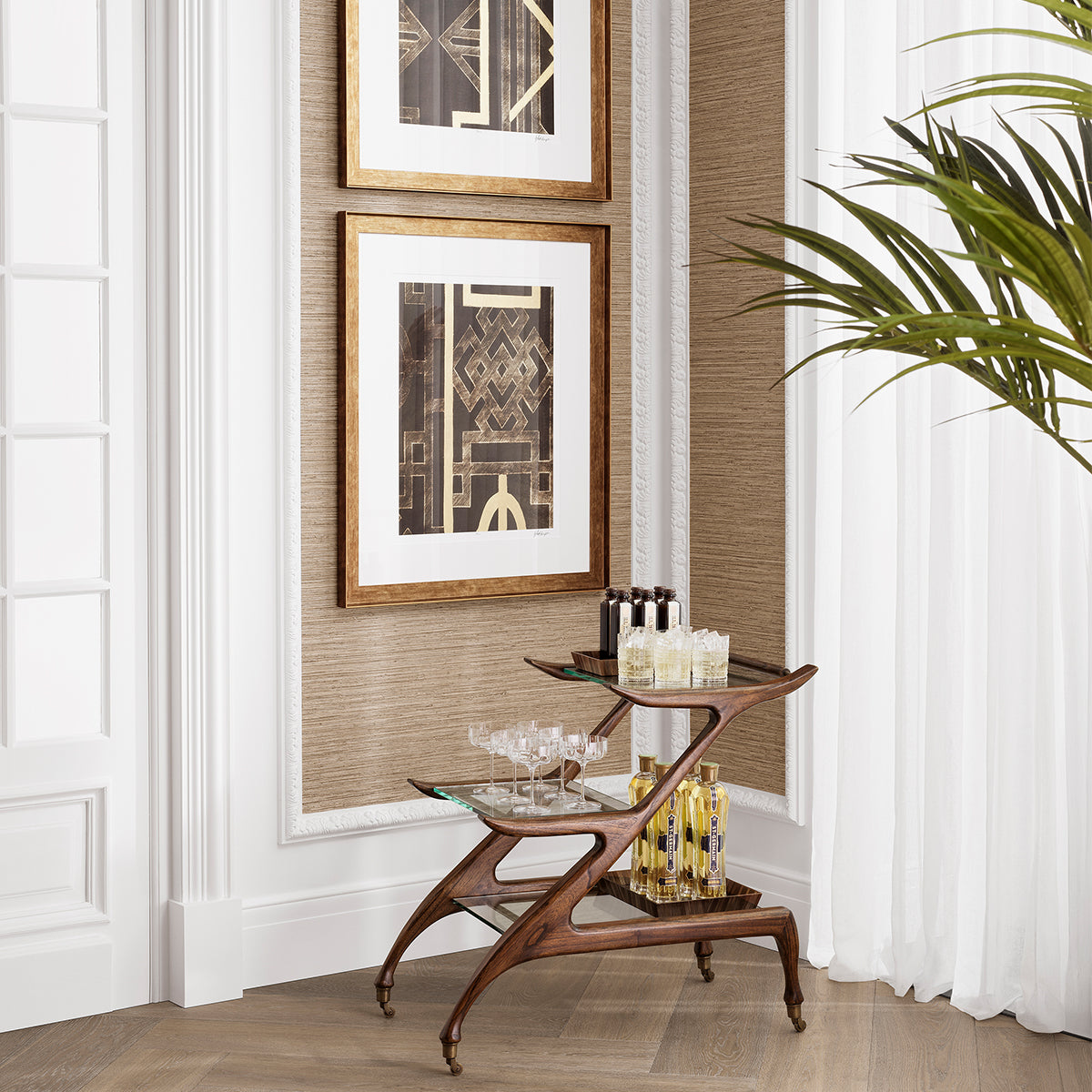 Drinkvagnen Trolley Manzo Double från Eichholtz har en klassiskt brun finish som framhäver den rika träkaraktären i kombination med klara glasskivor. Dess design hämtar inspiration från Mid Century Modern och erbjuder två nivåer som både ökar funktionaliteten och ger vagnen en elegant, strömlinjeformad siluett. Resultatet är en drinkvagn som förenar vintagekänsla med modern elegans – ett stilfullt och praktiskt inslag i hemmets sociala miljöer.