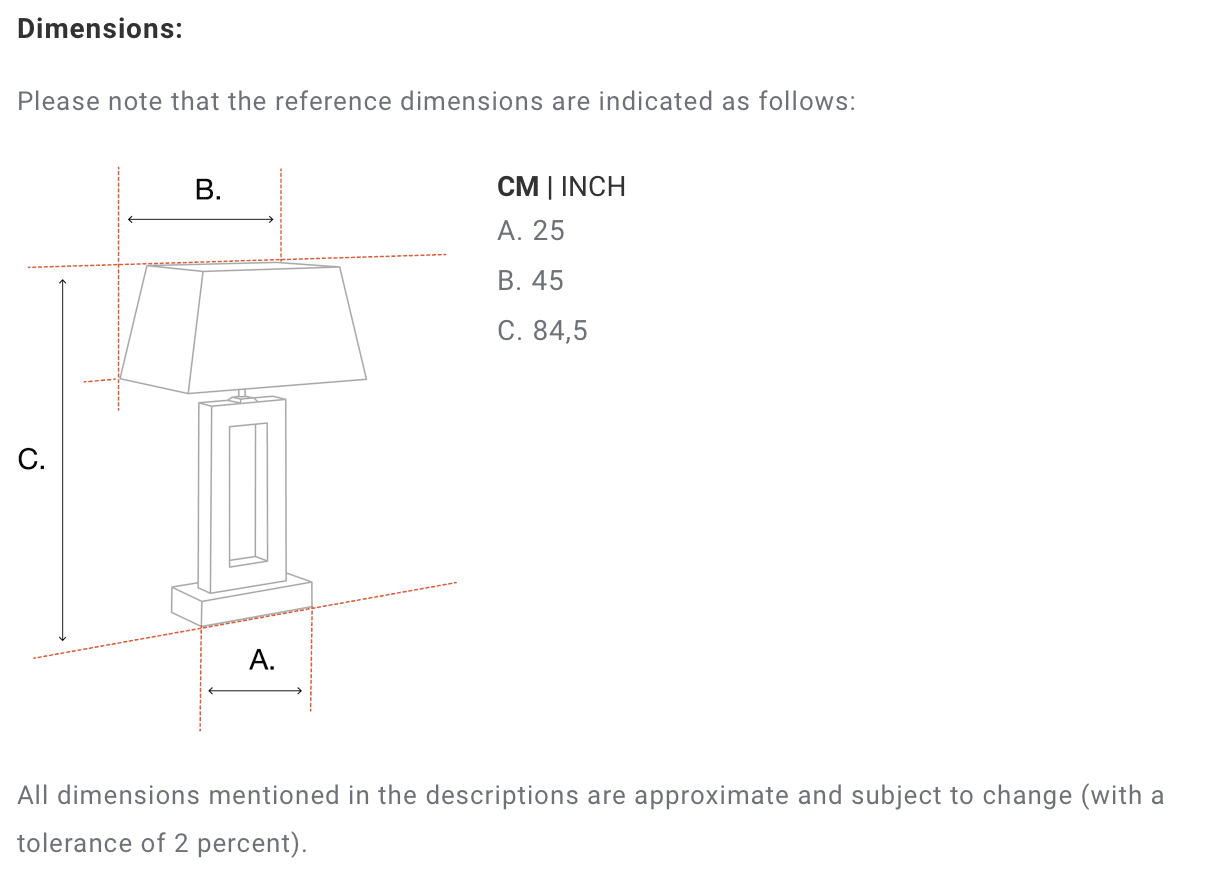 | Shade dimensions | 45 x 22 x H. 23 cm |