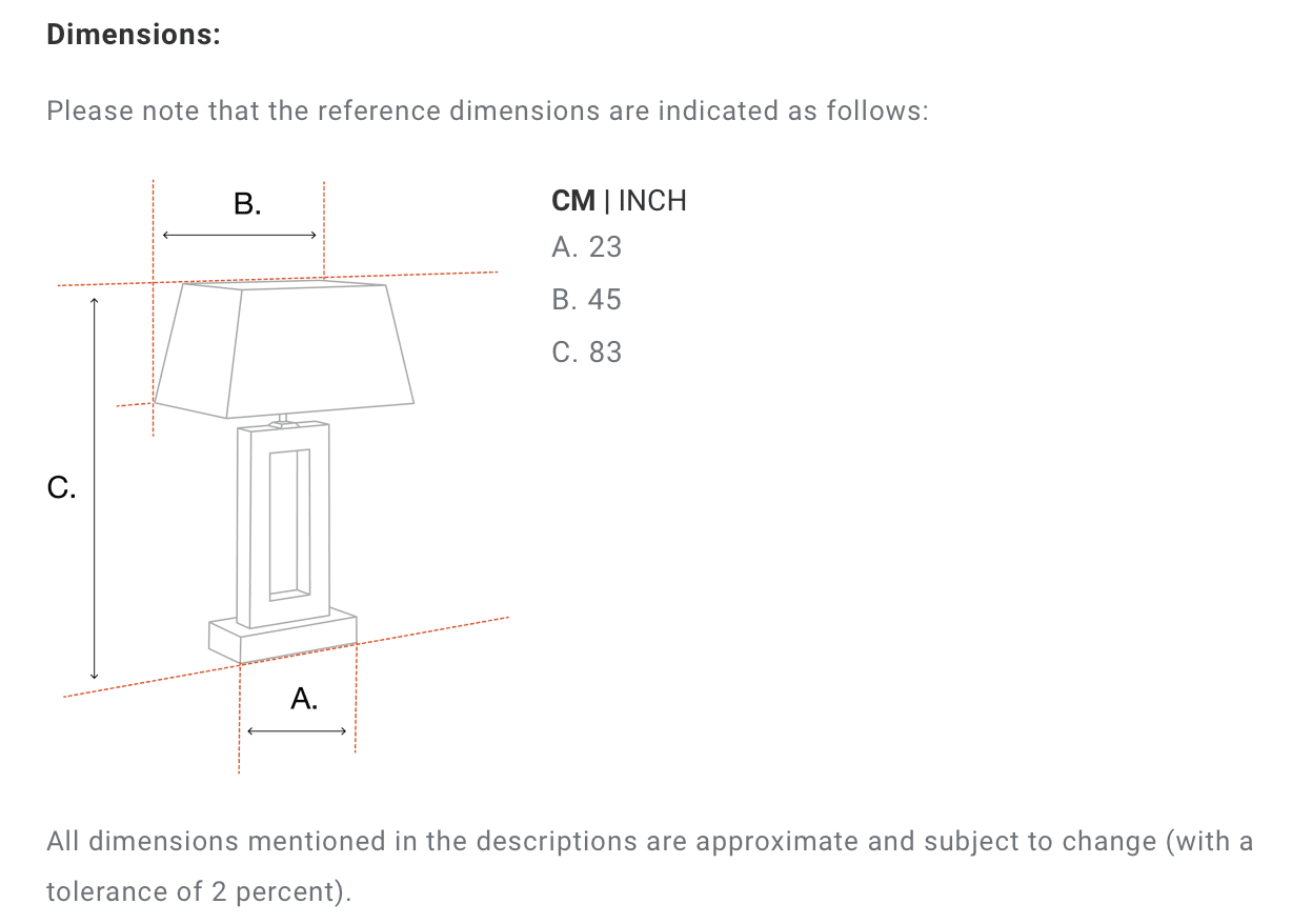 | Shade dimensions | ø 45 x H. 25 cm |