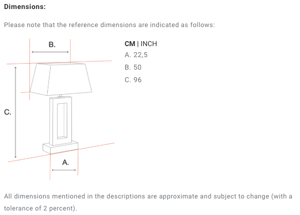| Shade dimensions | ø 50 x ø 42 x H. 34 cm |