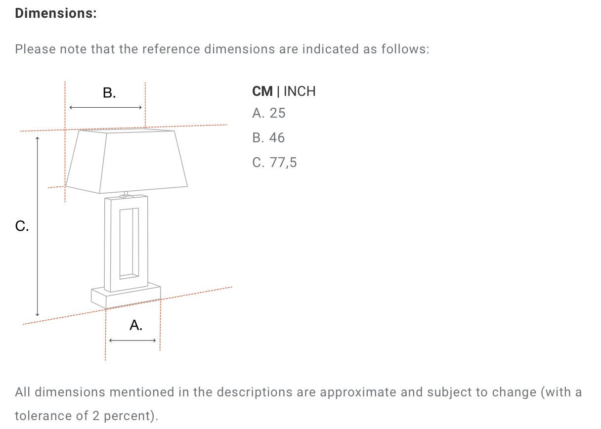 | Shade dimensions | 46 x 22 x H. 23,5 cm |