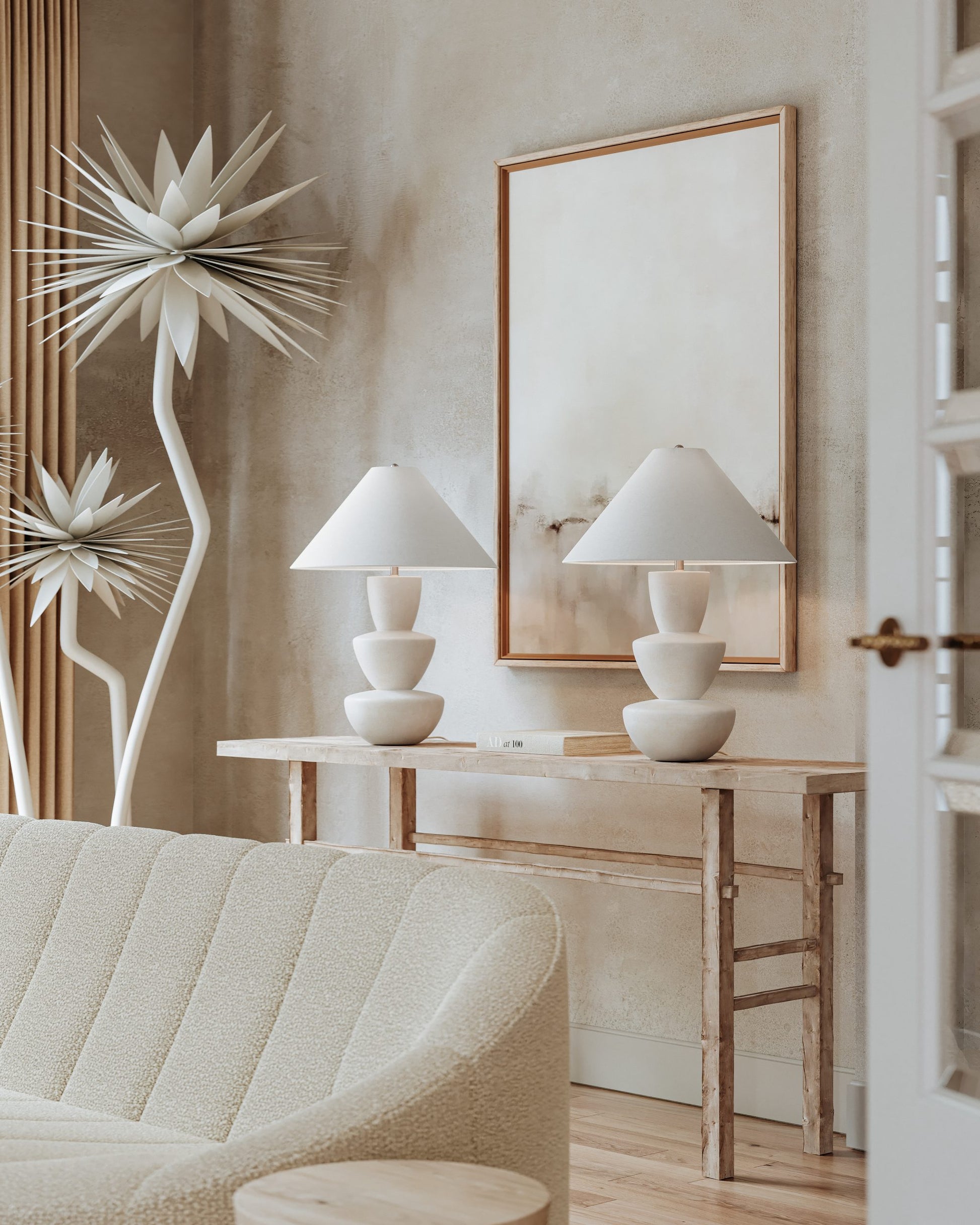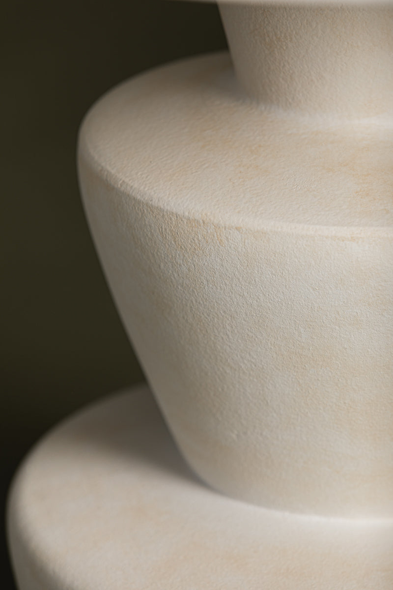 Kamas Bordslampa från Hudson Valley Lighting Group är en lampa med en organisk, handgjord siluett. Den består av tre staplade skårlika former i elfenbensfärgad, texturerad keramik som ger lampan ett naturligt och stilrent uttryck. Den avsmalnande off-white linsskärmen och Patina Brass detaljer förstärker den varma, naturliga skönheten. Denna moderna, organiska lampa är perfekt för att skapa en fräsch och ren känsla i hallen, sovrummet eller andra vardagsrum, och passar utmärkt på accent- eller sidobord.