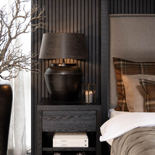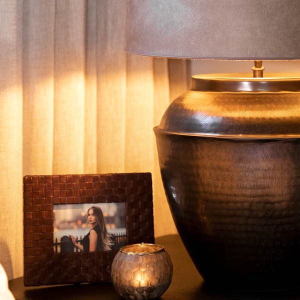 Bordslampan Lepedona i svart antikbrons från Artwood. Lampan har en urnformad fot i metall med en vackert hamrad yta, vilket ger en unik och sofistikerad känsla. Den svarta textilsladden kompletterar den klassiska designen och tillför en modern twist. Observera att lampskärmen inte ingår.