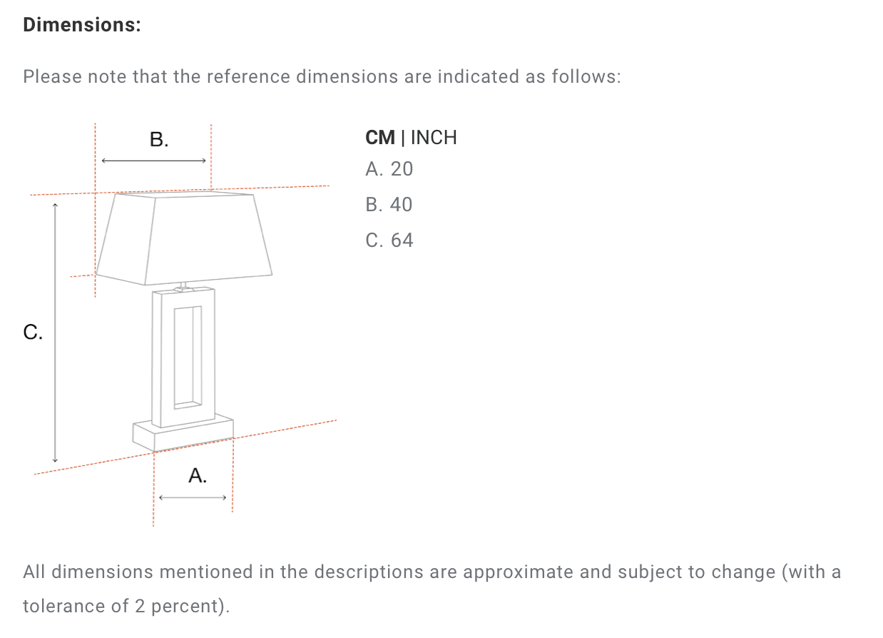 | Shade dimensions | 40 x 20 x H. 20 cm |