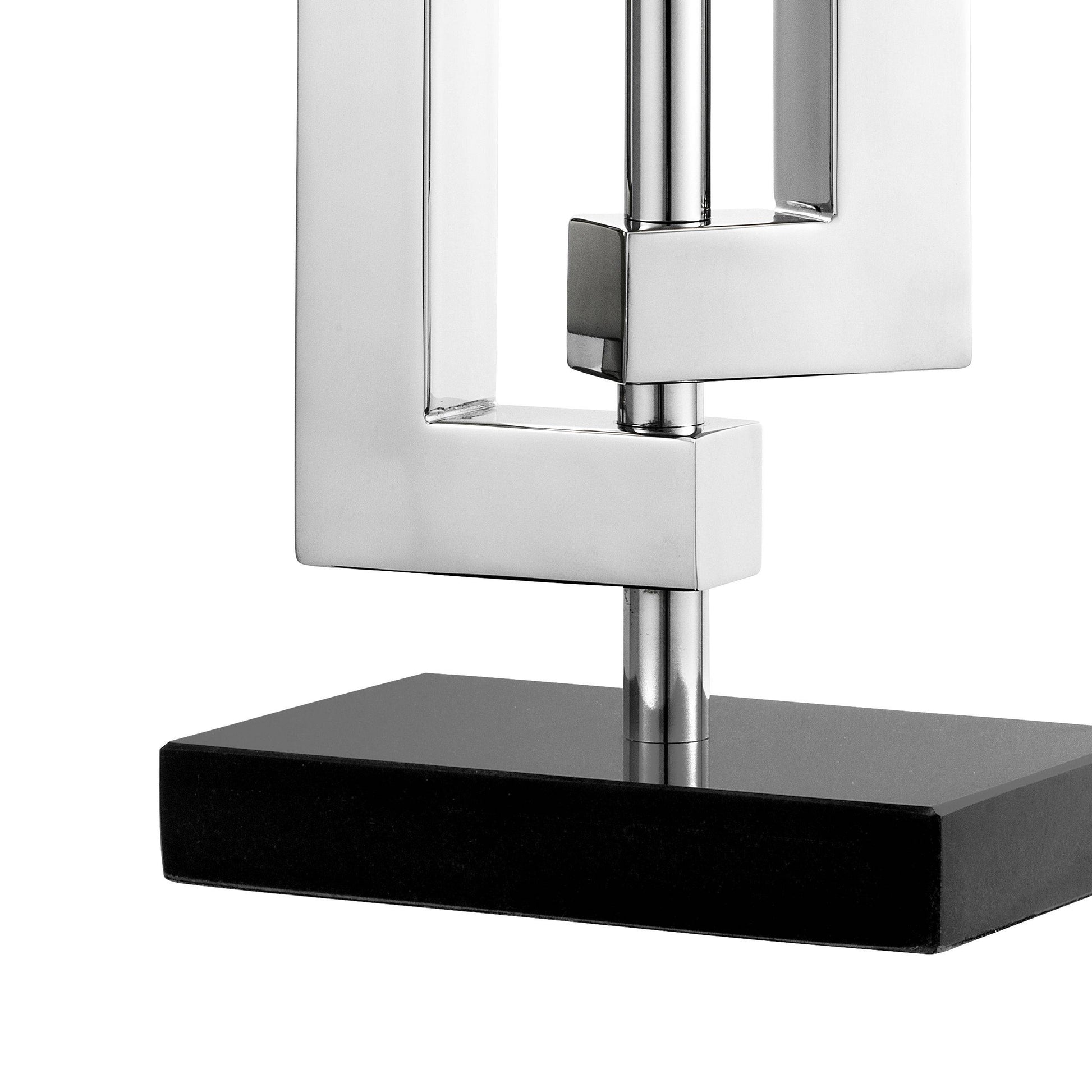 Tillför ett exklusivt tillskott till din hall, lounge eller sovrum med den skulpturella bordslampan Leroux. Denna moderna lampa består av en rektangulär, svart granitbas och en välsignad och lätt lekfull stomme som känns gedigen och utstrålar exklusiv design. Den levereras med en rektangulär vit lampskärm.