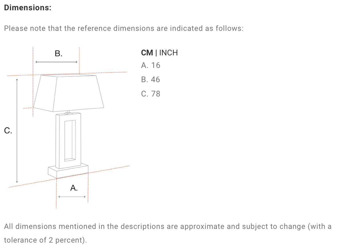 | Shade dimensions | 46 x 40 x 30.5 cm |