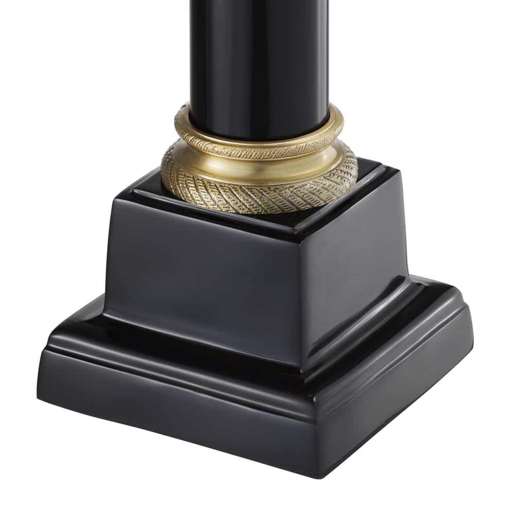 Table Lamp Monaco från Eichholtz. Ståtlig och stor bordslampa med läcker svart lack och antik mässingsfinish. Denna lyxiga bordslampa utstrålar elegans och är det perfekta komplementet till både klassiska och moderna utrymmen. Inspirerad av korintiska pelare har den en pelarliknande svart kropp och sockelbas med mässingsfärgade detaljer. Den medföljande svarta lampskärmen lyfter hela lampan med sin elegans.