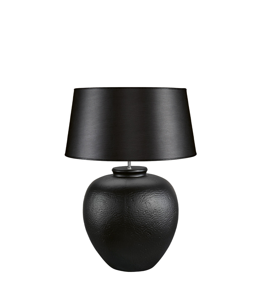 Bordslampa i svart keramik med en vacker form. Lampans strukturerade yta gör varje lampa unik, vilket innebär att just din lampa kan avvika något från produktbilden. Svart textilsladd med strömbrytare. Observera att lampskärmen inte ingår. Lampskärmen på produktbilden: Lampskärm Classic i storlek Large
