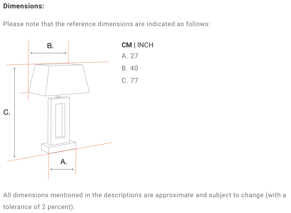 | Shade dimensions | 40 x 40 x H. 30 cm |