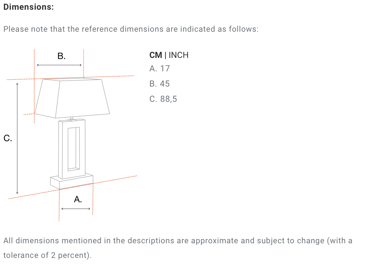 | Shade dimensions | 45 x 45 x H. 30 cm |