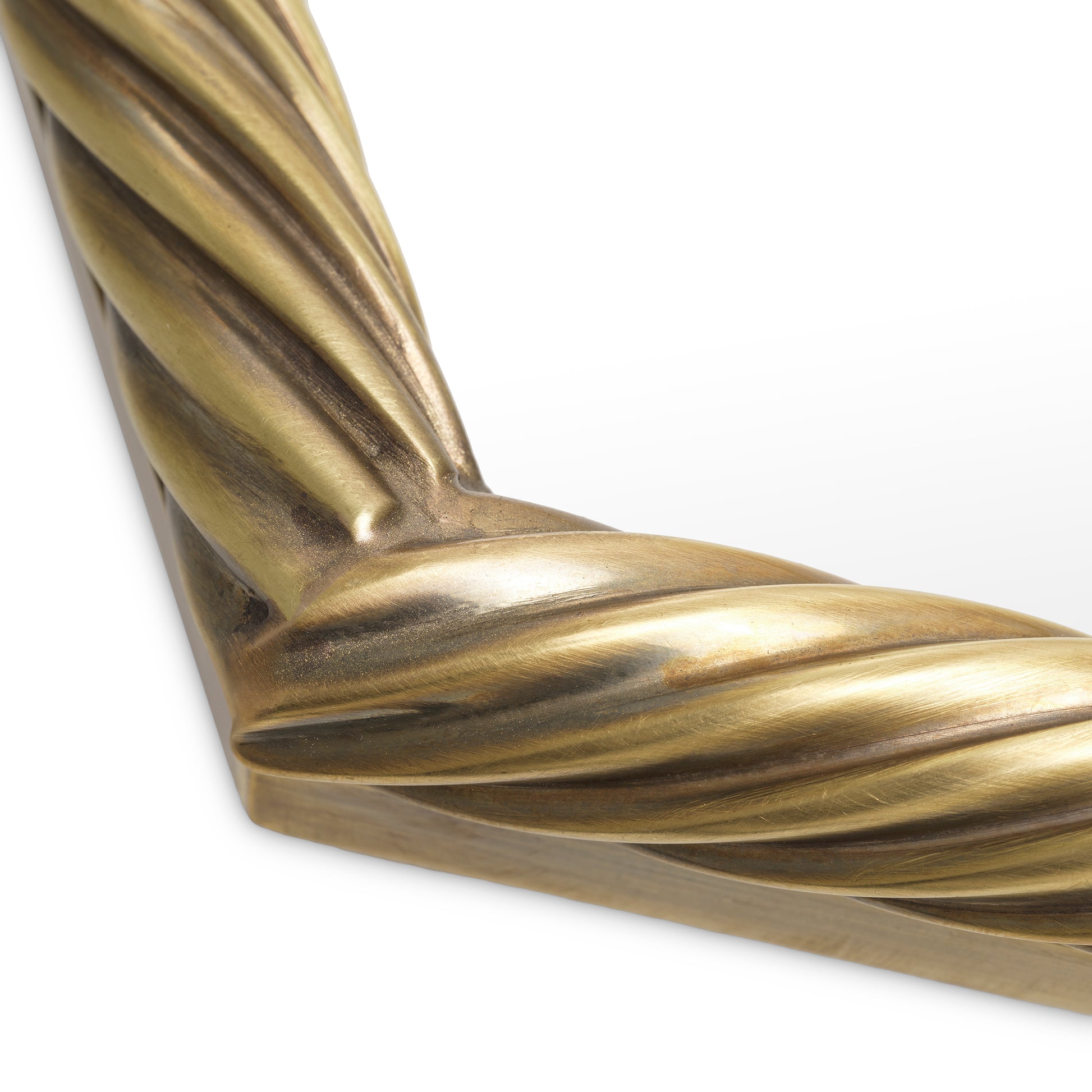 Denna eleganta serveringsbricka har en handgjord, tvinnad ram i vintage mässing och en spegelglasbotten som vittnar om gediget hantverk och känsla för detaljer.