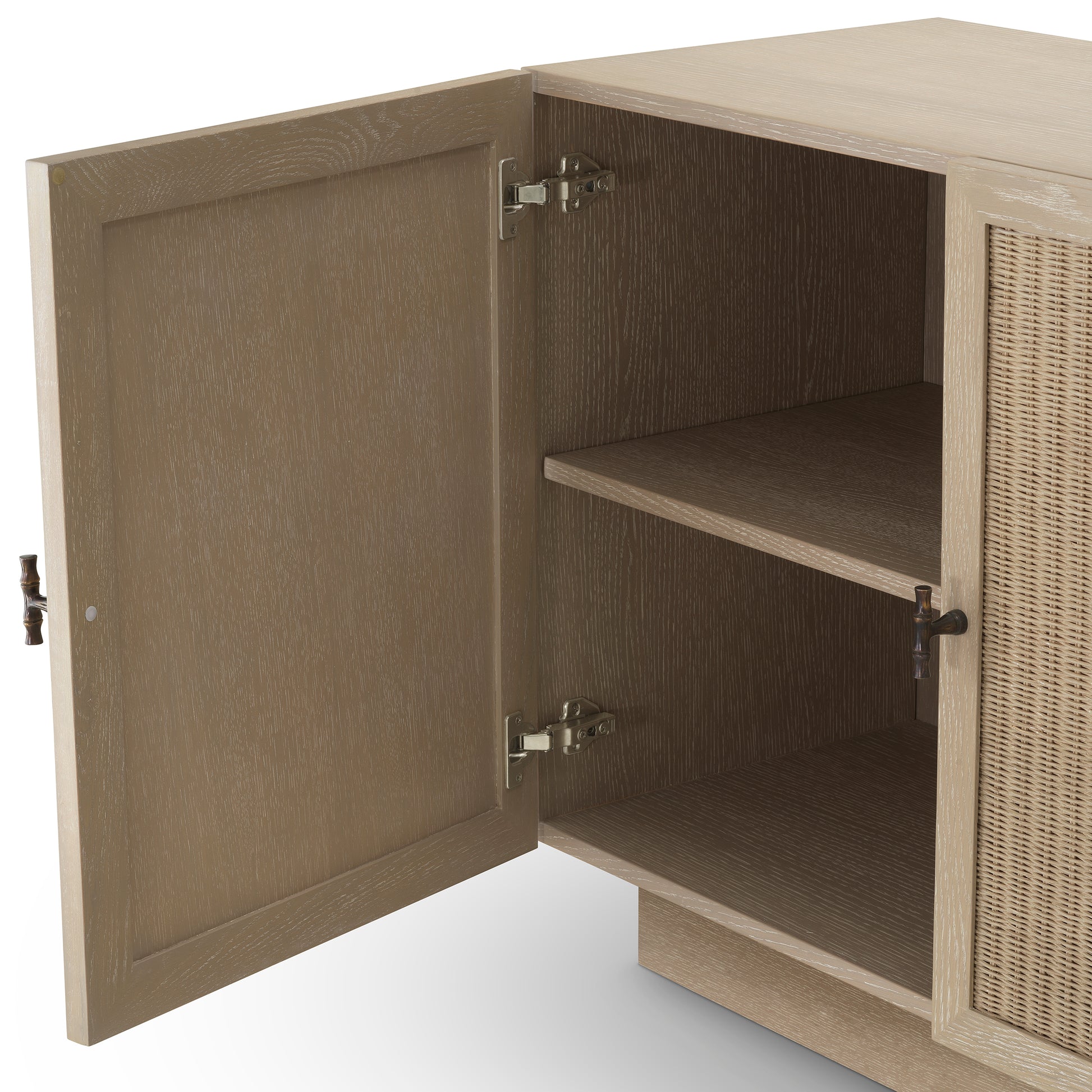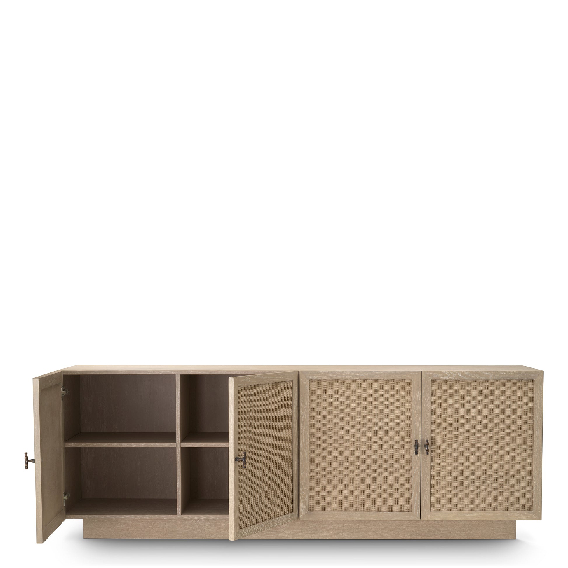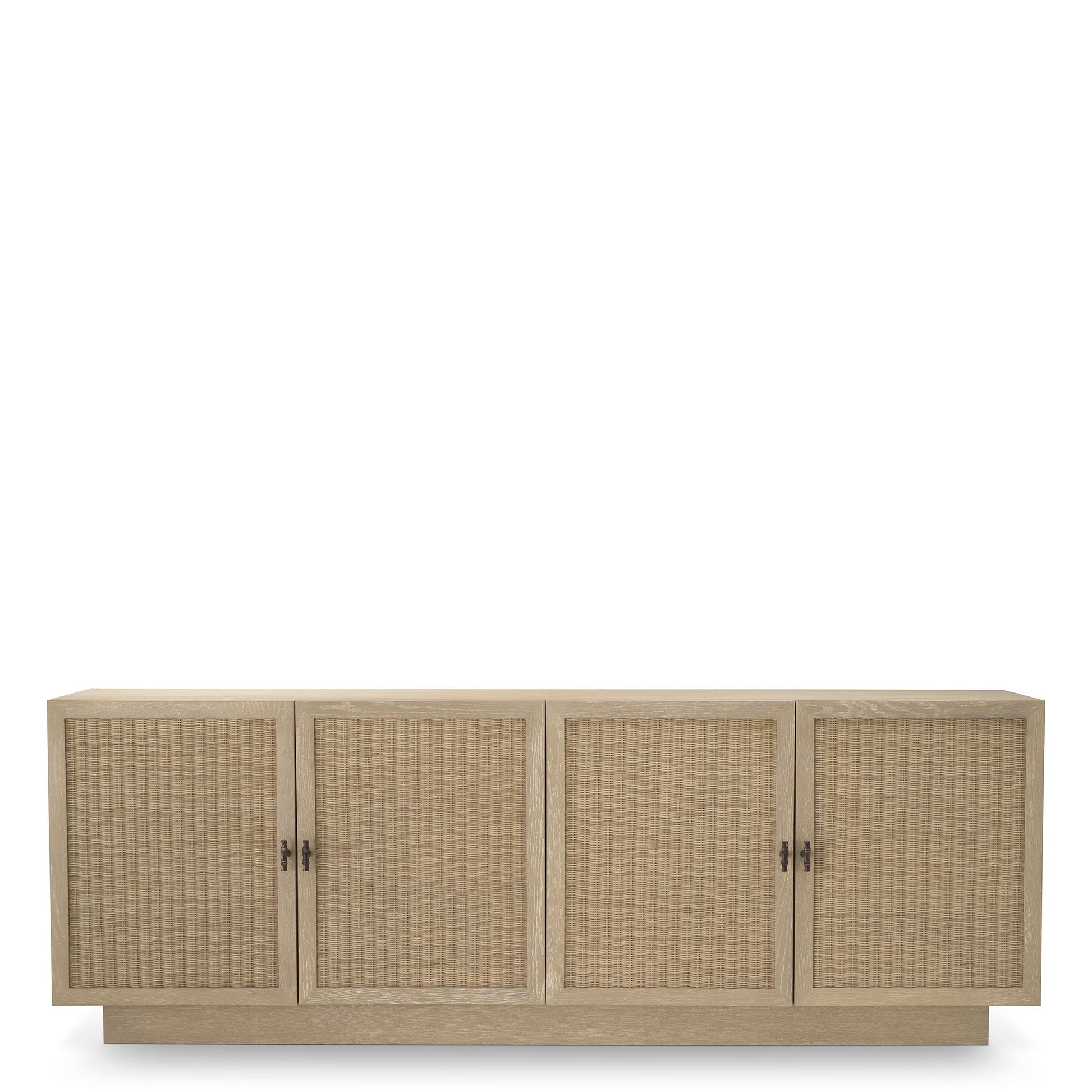Byrån Borchard från Eichholtz lyfter interiören med sin kombination av tvättad ekfanér och naturlig flätad rotting.