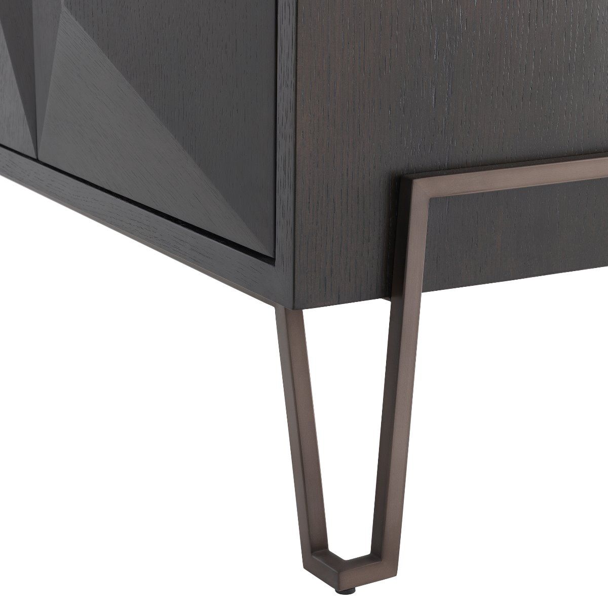 Cabinet Highland från Eichholtz. Stilig och praktisk skänk som fungerar mycket bra som TV-bänk med sina uttag för sladdar på baksidan. Praktful kvalitetsfull möbel som snabbt blir ett blickfång med sina triangulära silhuetter i dörrarna och med en stil som passar mycket väl in i det stiliga tv-rummet eller vardagsrummet.