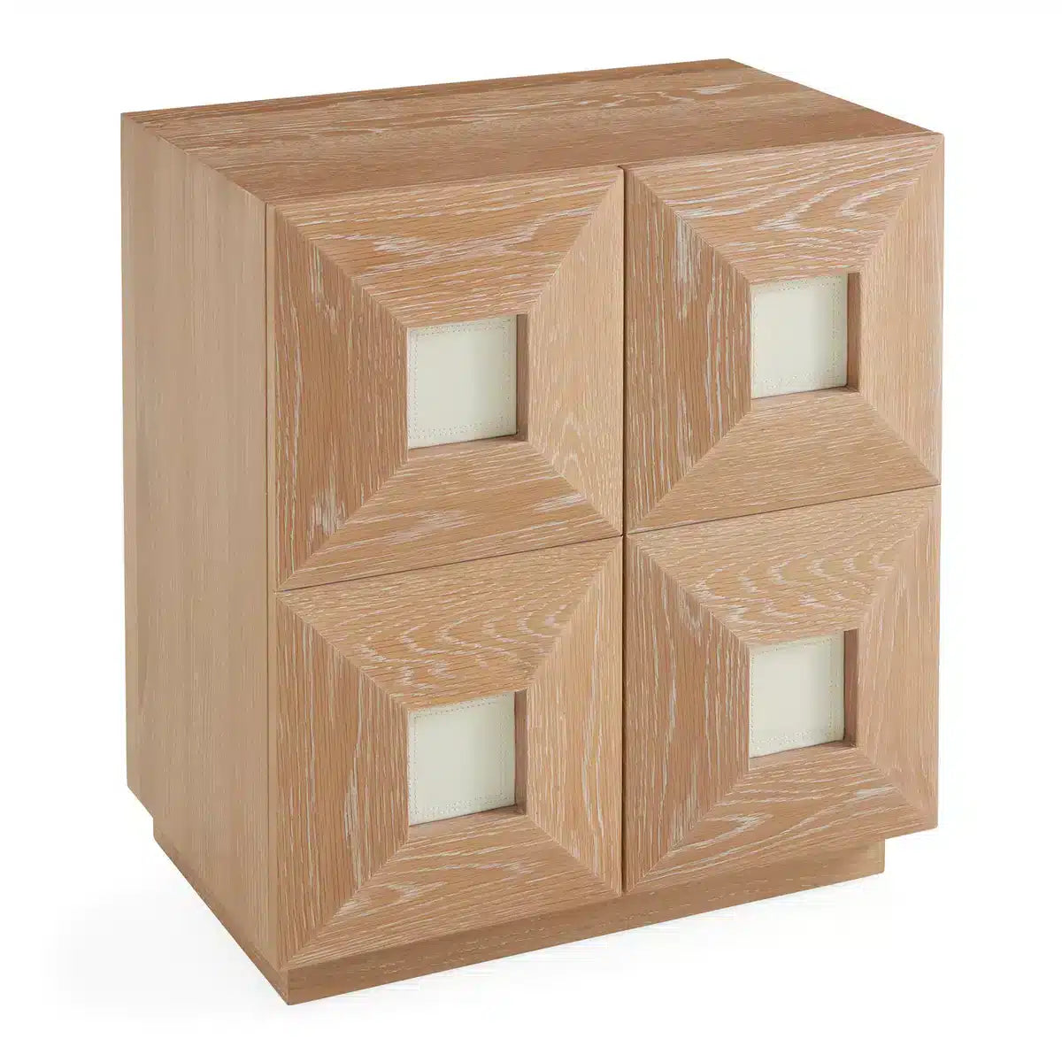 Tillverkad av stålborstad och kalkad massiv ek och kantad med ett dimensionellt mönster som fått inlägg i elfenbensläder detaljerade med tidlösa toppsydda kanter. Otto i ek erbjuder gott om förvaringsutrymme. En mycket exklusiv och läcker inredningsdetalj.