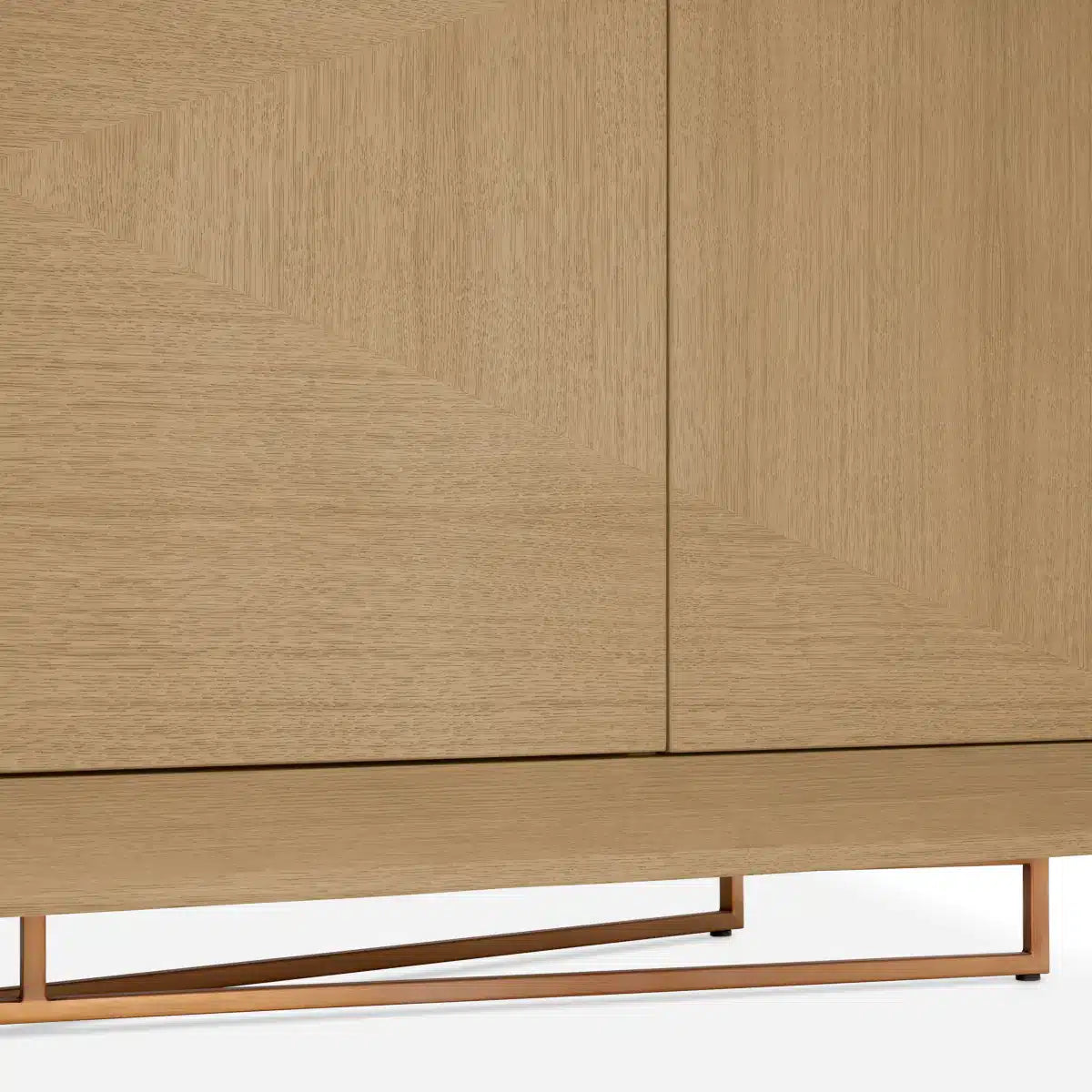 Den borstade mässingsfinishen på byråns bas tillför en sofistikerad touch, en diskret men elegant detalj som skapar en smakfull kontrast mot träets varma toner. Mässingen bidrar inte bara till byråns estetiska helhet, utan förstärker även känslan av exklusivitet och raffinerad lyx.