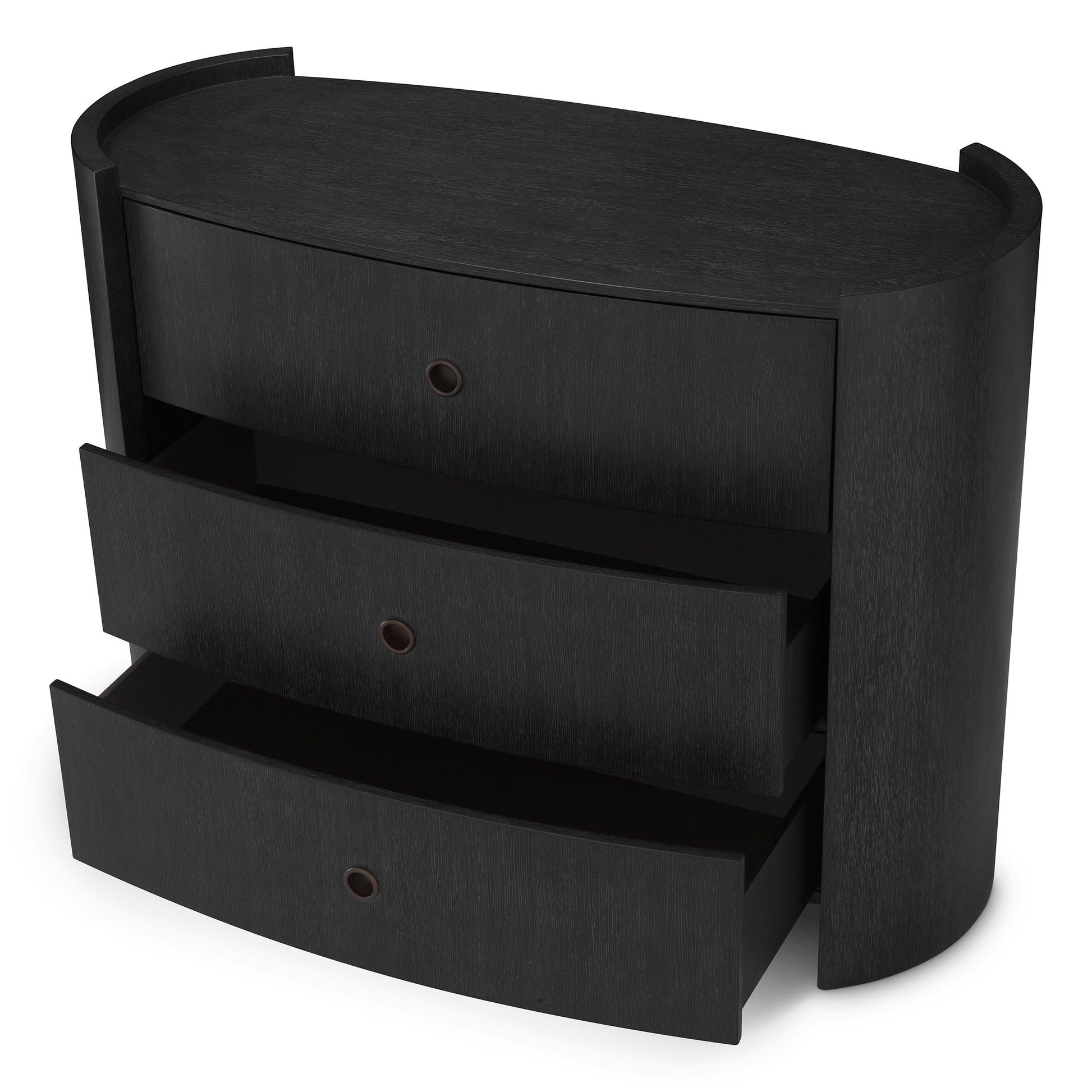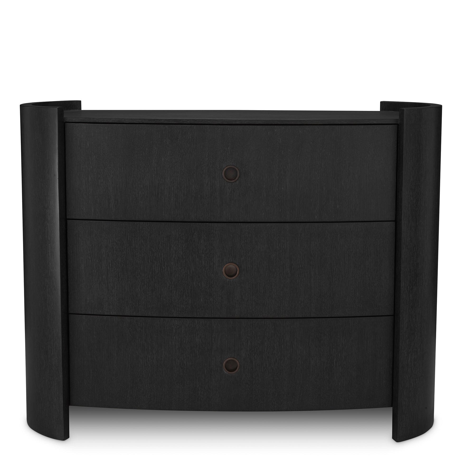 Byrå Splendora från Eichholtz utstrålar förfinad elegans med sin charcoal grey ekfanér och handtag i bronsfinish som förstärker dess sofistikerade karaktär. De ovala detaljerna tillför mjuka kurvor till designen, medan den slanka silhuetten ger ett diskret och tidlöst uttryck för den som uppskattar exklusiv lyx.