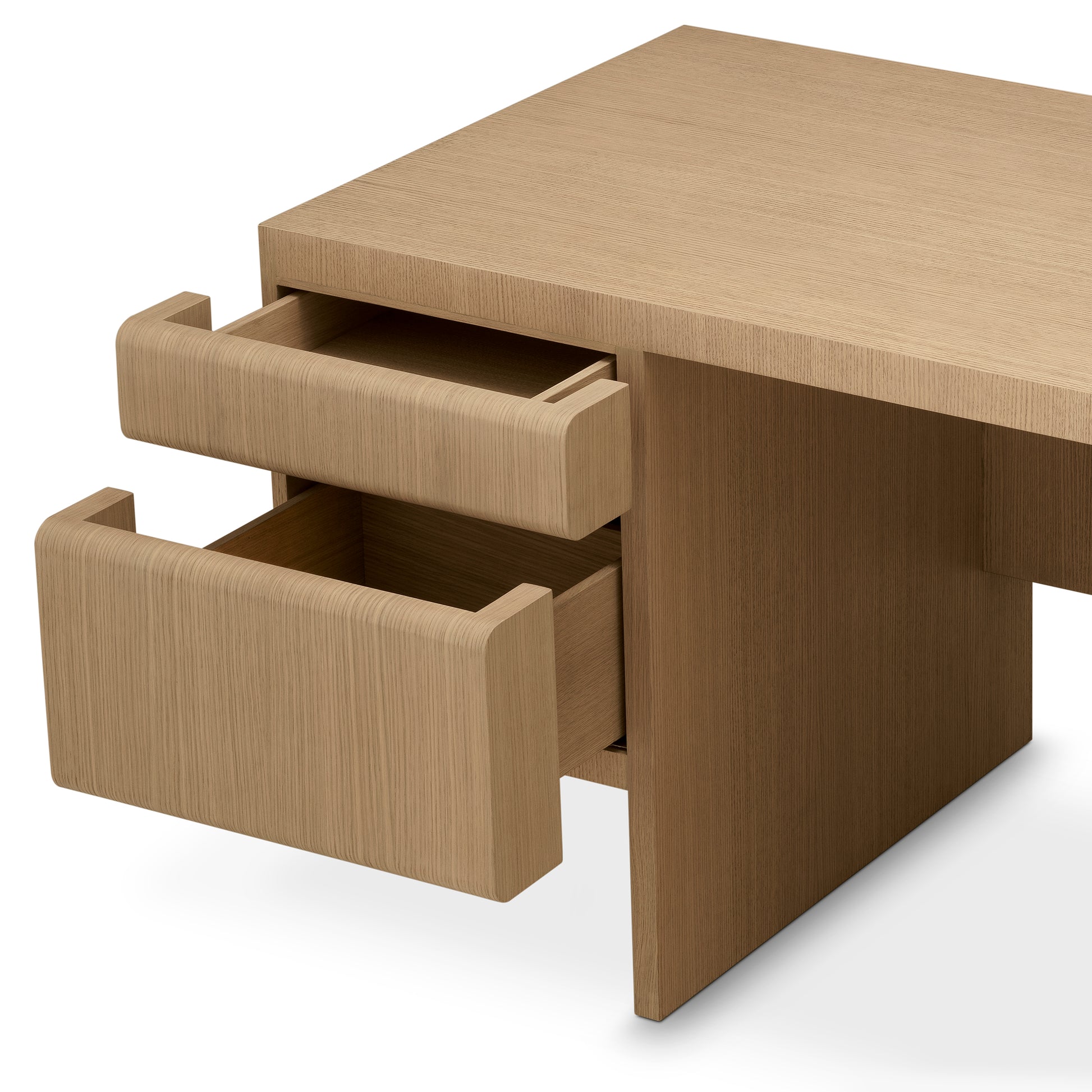 Skrivbordet Colston från Eichholtz utstrålar elegant enkelhet med sin exklusiva ekfanér och subtilt framträdande lådor som tillför dynamik och djup. De varma tonerna och den släta ytan skapar en lugn men sofistikerad atmosfär och förenar naturmaterial med modern design, vilket gör Colston till ett tidlöst tillskott i exklusiva miljöer.