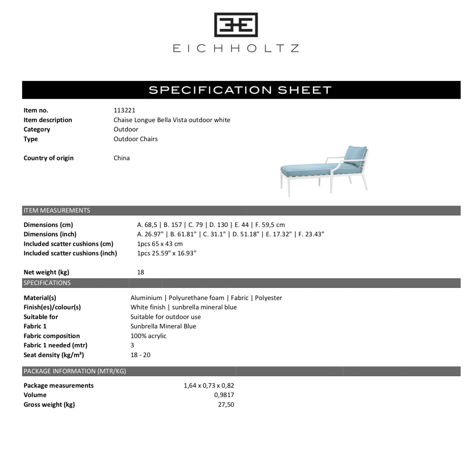 Läcker och snygg solbädd i lackad aluminium och skön dyna. Bella Vista är tillverkad av genuina material och är ett elegant tillägg till din vinterträdgård eller utomhusmiljö. Med sin sofistikerade look, tåliga lack och slitstarka dynor erbjuder den en ultrakomfortabel loungeupplevelse.