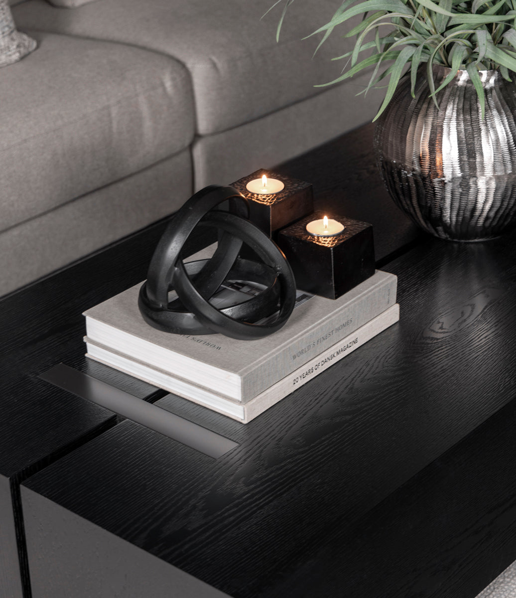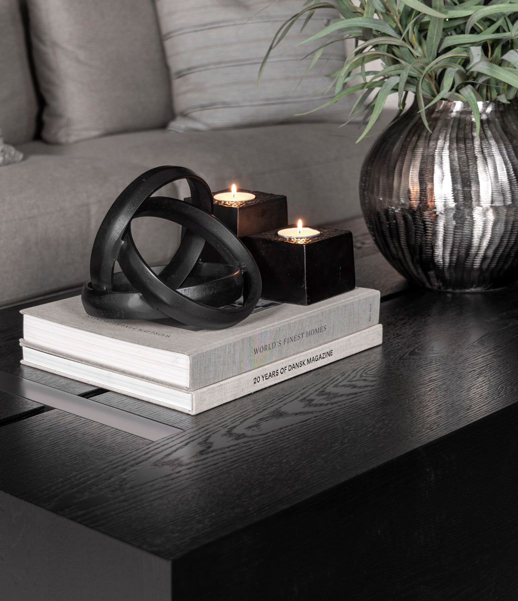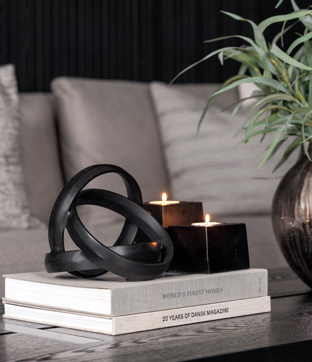 Denna metallskulptur har runda cirklar som formar sig i en knut, vilket gör den till ett perfekt tillskott i ditt stilleben eller på soffbordet. Trinity är tillverkad av metall och kombinerar den varma färgen med mjuka linjer för att skapa snygga kontraster som kan användas som ett genomgående tema i ditt hem. Denna dekorativa skulptur tillför en unik och elegant touch till din inredning.
