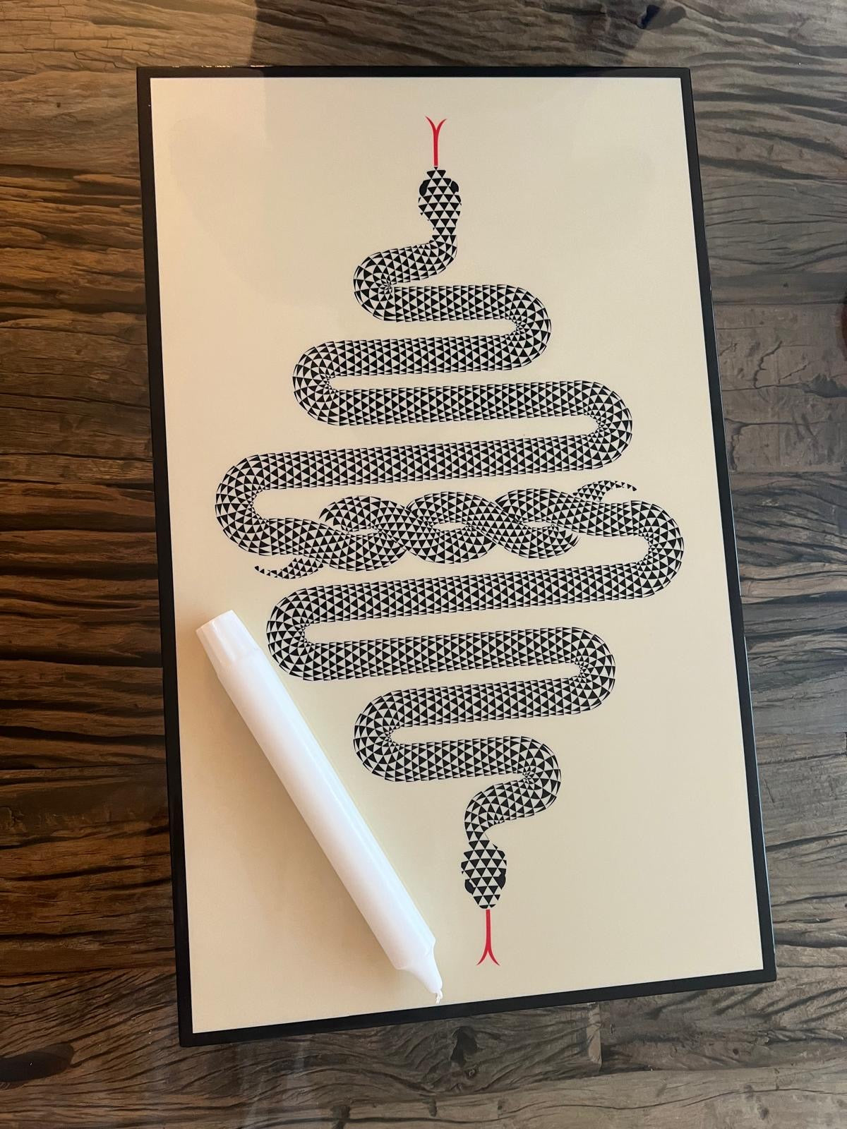 Charma och utmana dina spelvänner på med vårt Eden Backgammon Set. Tillverkad i couturelack, har den högglansiga finishen en sammanflätad duo av slingrande ormar. Väl öppen kommer den att avslöja en slående interiör i klassiskt svart, elfenben och rött, med våra ormar head-to-head. Efter att ha besegrat dina fiender, så fälls den lätt ihop för att bli en häftig accent på cocktailbordet.