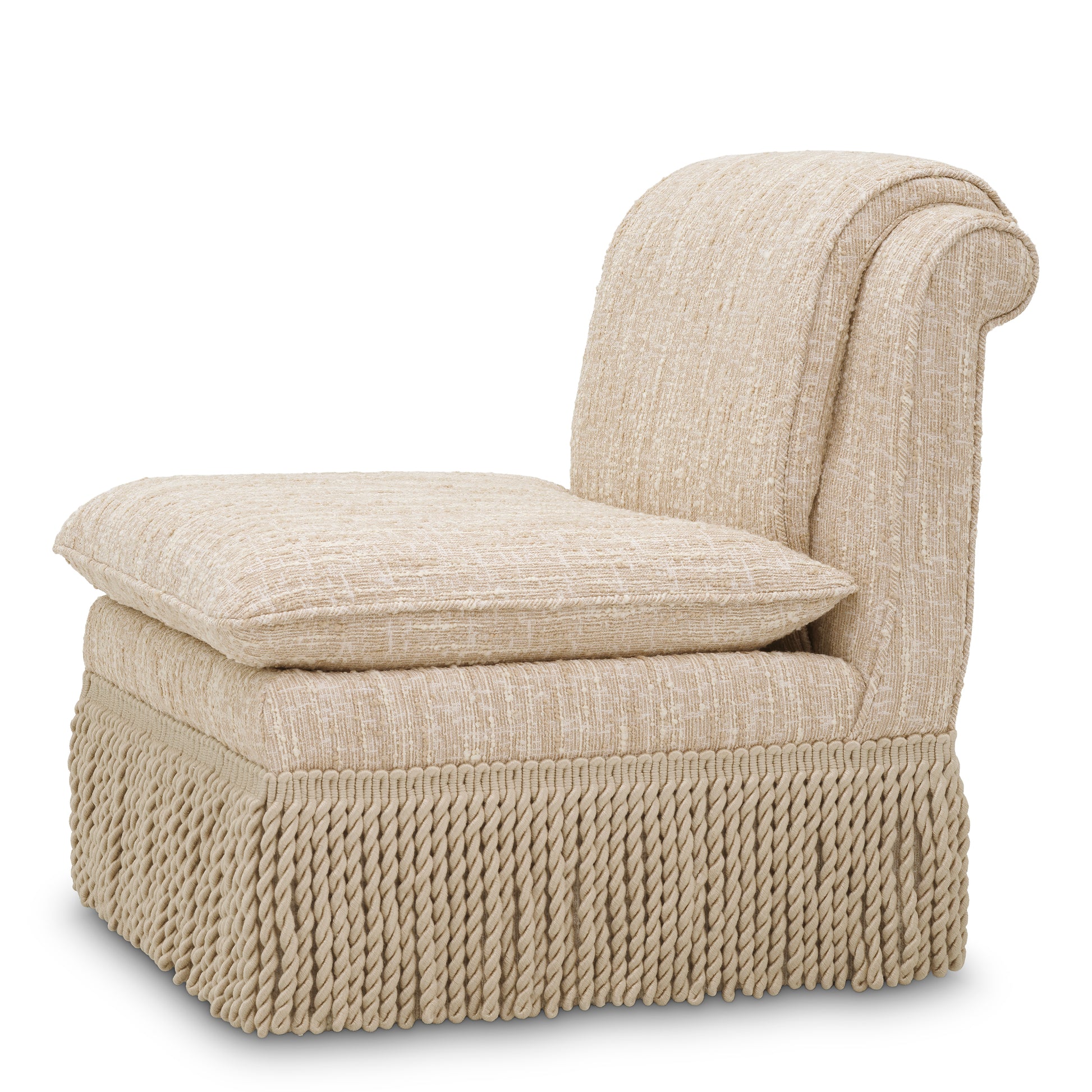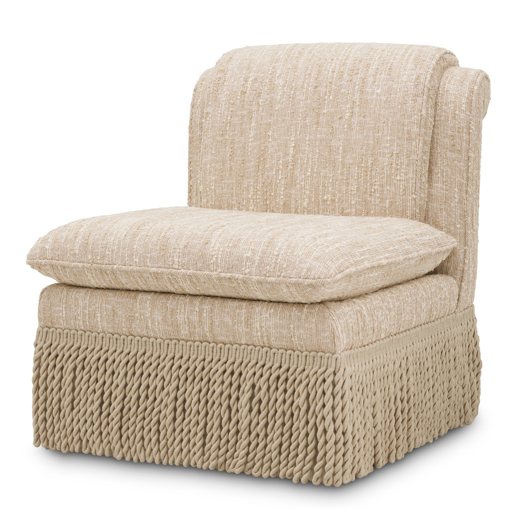 Designen kännetecknas av sina dekorativa fransade kanter som ger fåtöljen en unik karaktär och förstärker dess exklusiva känsla. Den generösa stoppningen ger en behaglig sittkomfort, vilket gör Fåtölj Fairburn från Eichholtz till en perfekt plats för avkoppling.