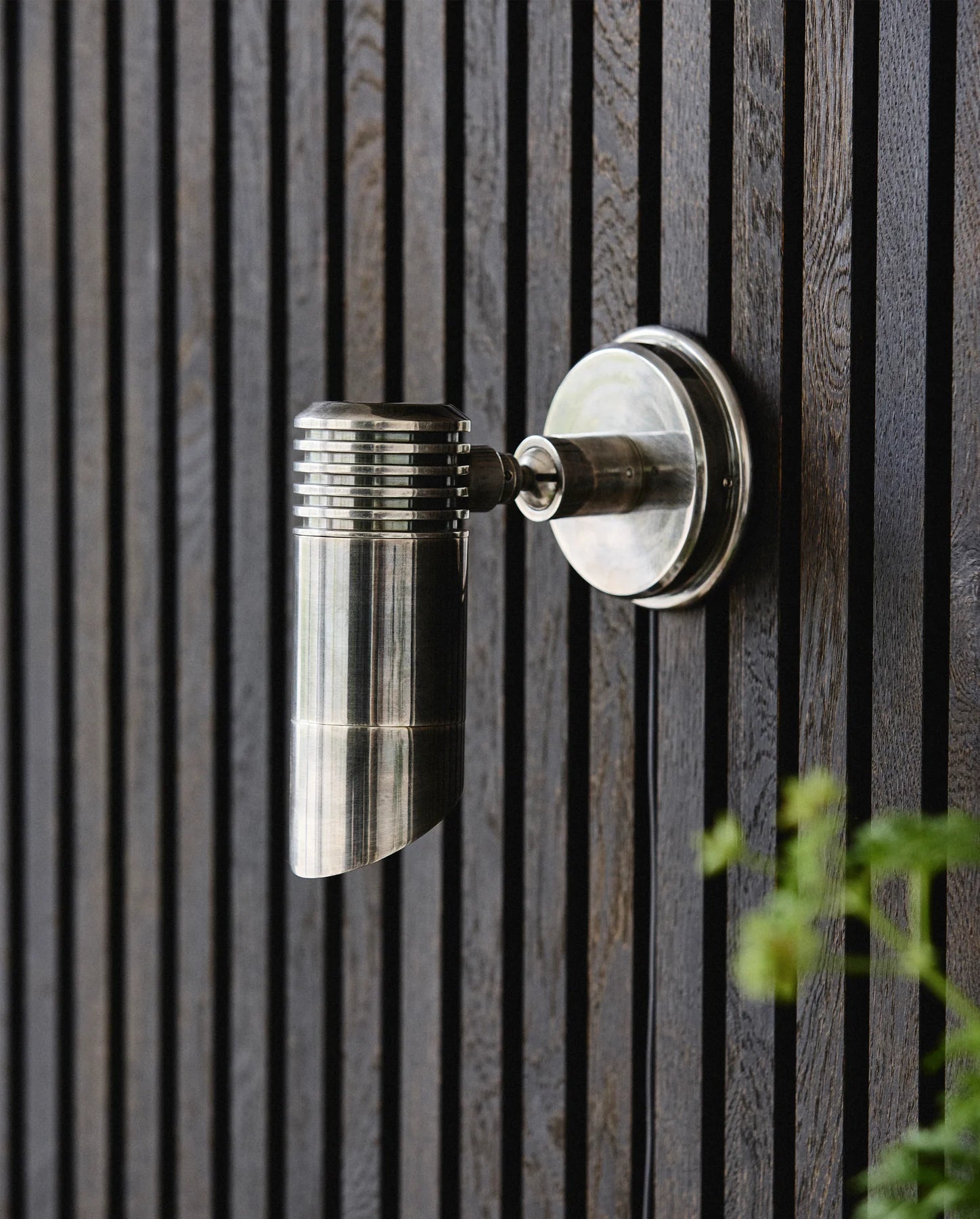 Den kompakta formen och justerbara lamphuvudet gör den idealisk för att belysa fasader, terrasser eller infarter. Ytan kommer med tiden att utveckla en naturlig patina, vilket ger lampan ett levande och autentiskt uttryck som bara blir vackrare med åren.