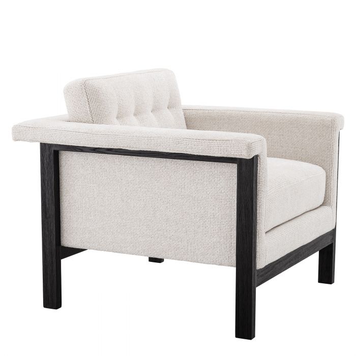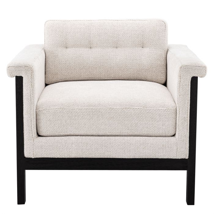 Njut av det djärva utseendet hos fåtölj Allison. Med sin svarta ram, strama vinklar och symmetri är denna lyxiga accentstol med en mjuk klädsel vi kallar Lysa off-white ett måste för art déco-älskare.