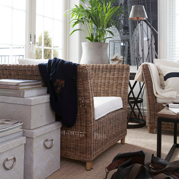 Arlington finns även som rottingsoffa och rottingfåtölj i samma serie, vilket gör det enkelt att skapa en enhetlig och inbjudande möbelgrupp. Med sin tidlösa design och naturliga material är denna fåtölj perfekt för både vardagsrummet, uterummet eller den avkopplande hörnan. Med dyna i färgen Offwhite.