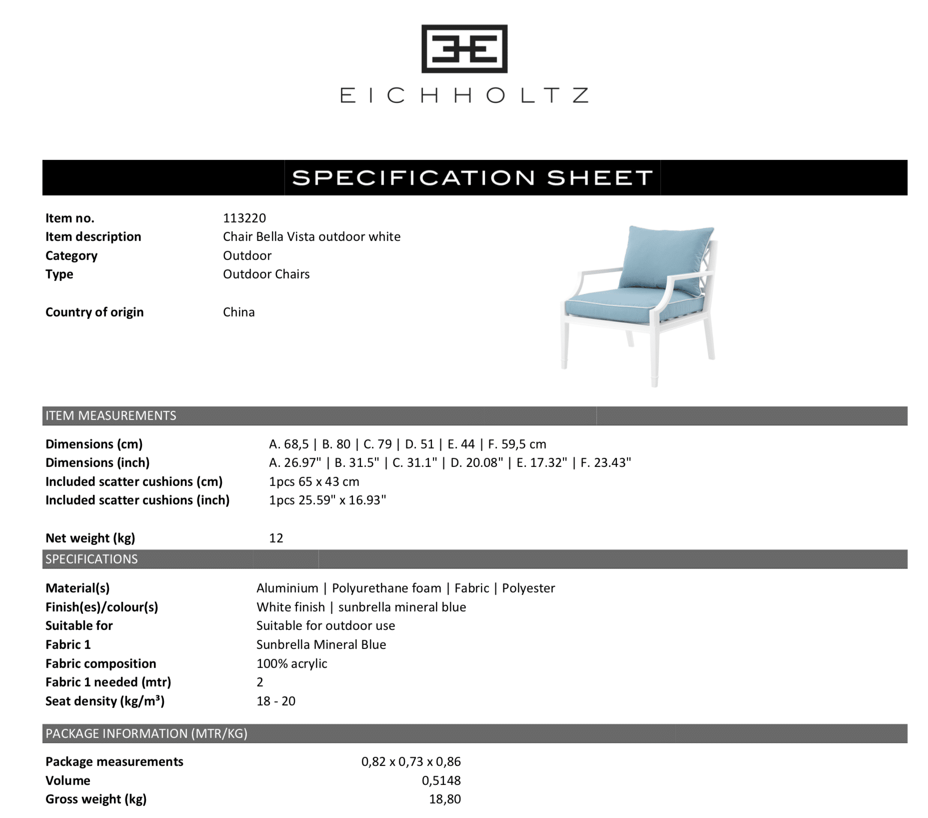 En härligt designad fåtölj i lackad aluminium som inte rostar, och med skön dyna och kudde i högsta kvalitet. Perfekt till din loungegrupp utomhus, vinterträdgård eller matbord.