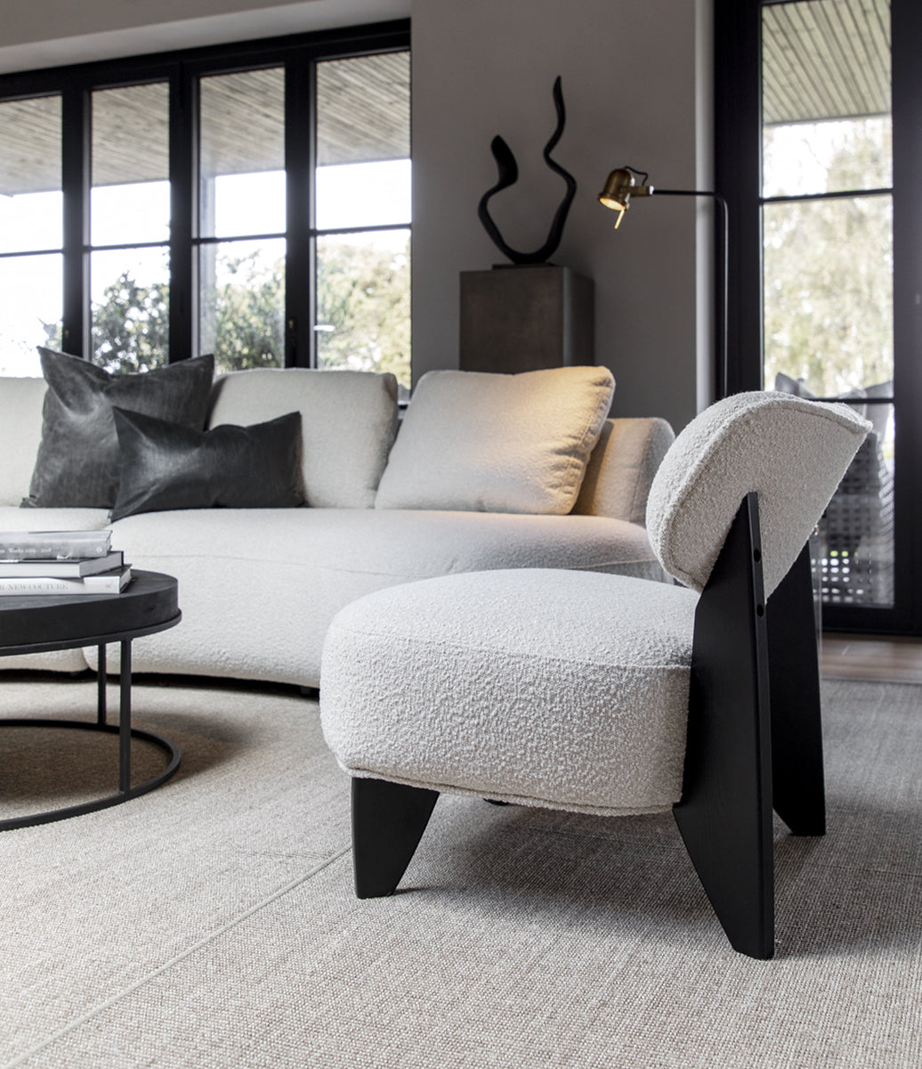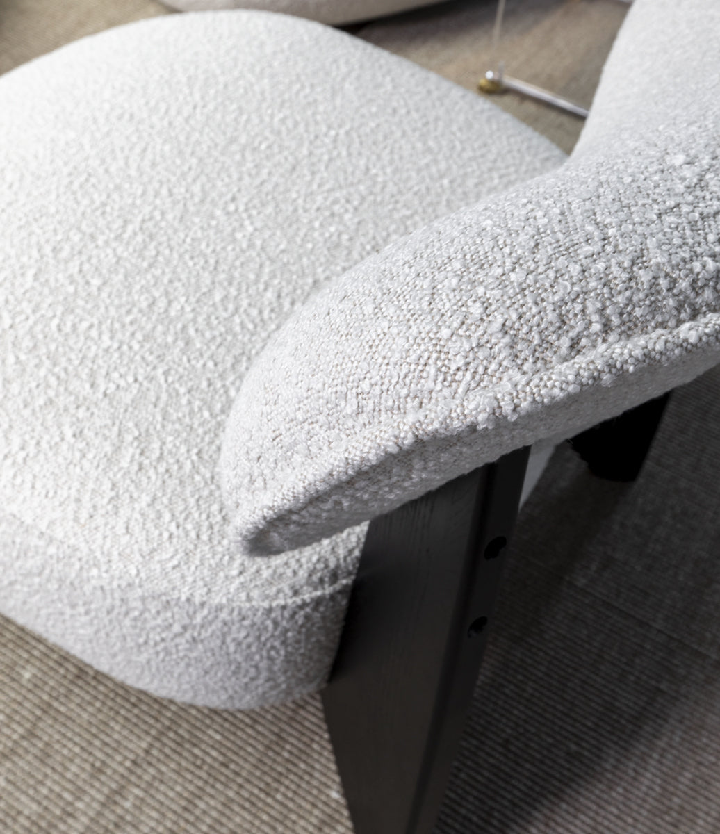 Cadiz är en stilren och elegant loungefåtölj från Artwood som förenar en mjuk och inbjudande rund formgivning med en minimalistisk och modern design. Den ljusa textilen på sits och rygg ger en känsla av luftighet och komfort, medan de raka linjerna på armstöd och rygg ger en stramare och mer stilren karaktär. Benen, som är tillverkade i solid ek och målade i svart, skapar en intressant kontrast till den ljusa klädseln och bidrar till fåtöljens sofistikerade uttryck. Denna kombination av mjuka och raka linjer, ljusa och mörka toner ger fåtöljen en harmonisk och tidlös estetik.