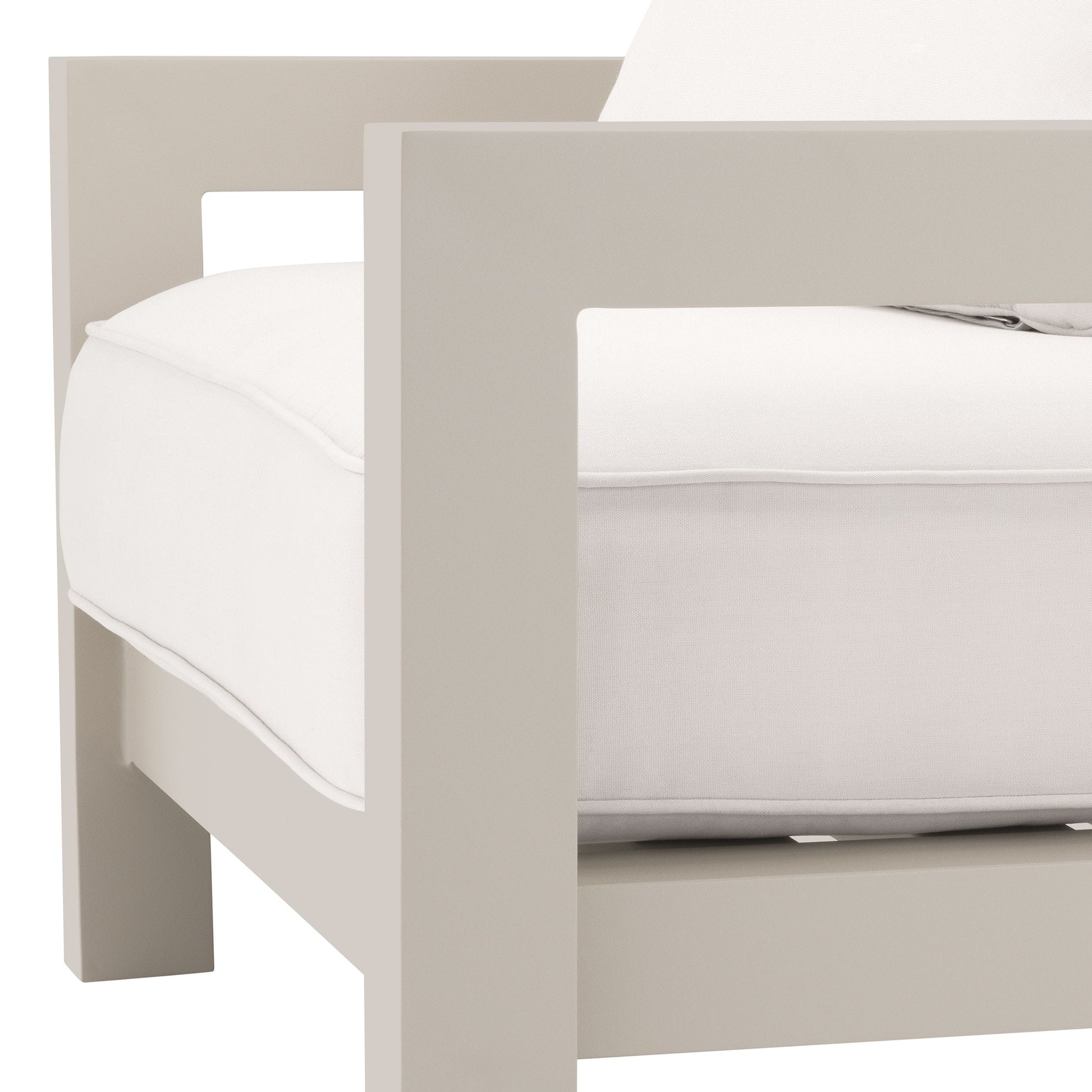 Pulverlackad aluminium i stommen är slitstarkt, rostar inte, och står emot väder och vind mycket bra. Dynorna har perfekt stoppning med balans för stöd och komfort, klädd med sunbrellacanvas som är UV-resistent, står bra emot solblekning och är dessutom vattenavvisande.