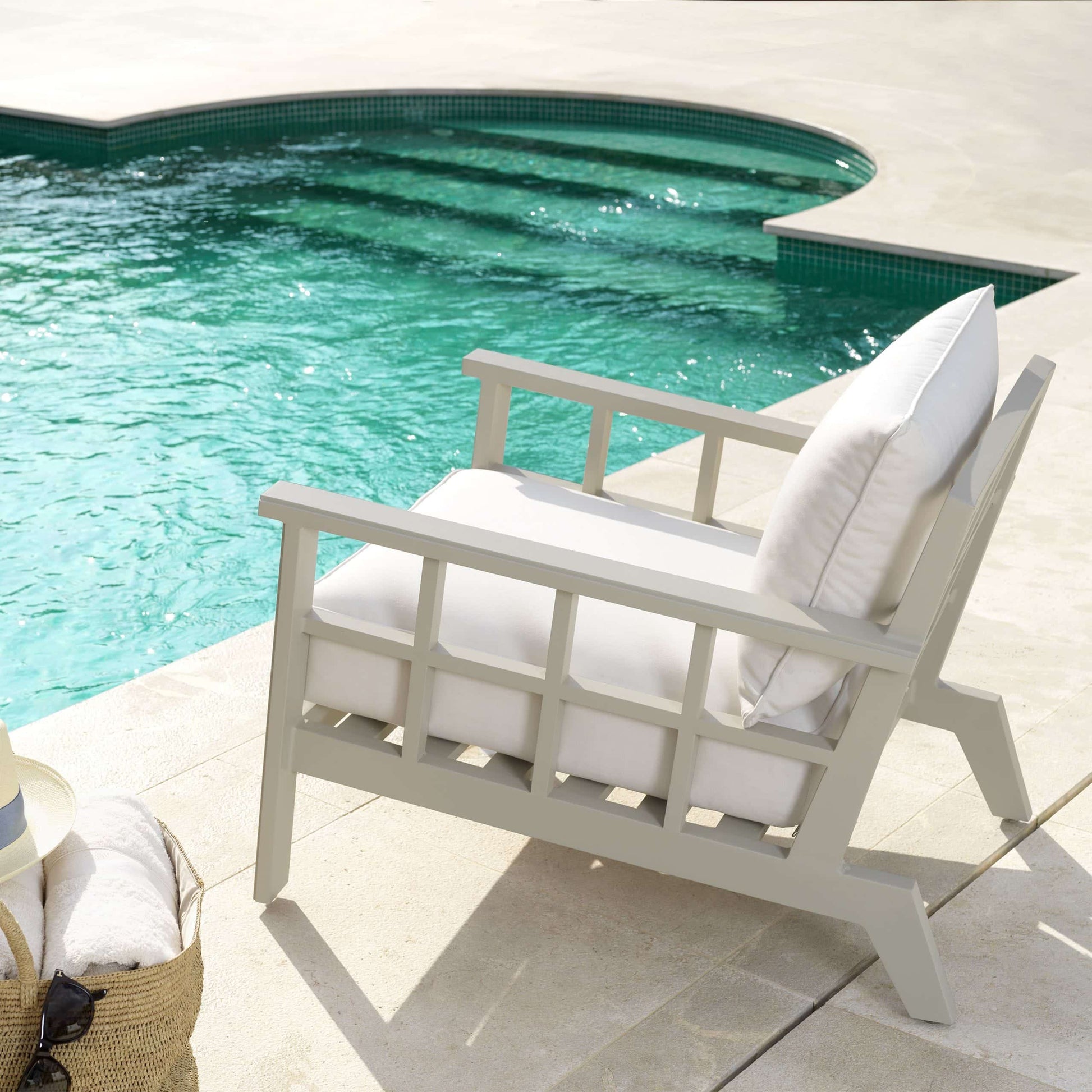 Pulverlackad aluminium i stommen är slitstarkt, rostar inte, och står emot väder och vind mycket väl. Dynorna har perfekt stoppning med balans för stöd och komfort, klädd med sunbrellacanvas som är UV-resistent, står bra emot solblekning och är dessutom vattenavvisande.