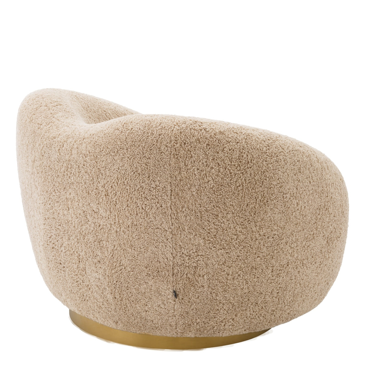 Uppgradera stilen på din heminredning med snurrbara fåtöljen Diego. Den här attraktiva fåtöljen representerar den perfekta blandningen av design, funktion och komfort. Klädd i “teddybjörnsmjuk” klädsel vid namn Canberra sand, och vilande på en vridbar bas i borstad mässingsfinish smälter den perfekt in i alla inredningsstilar och färgscheman. Para ihop den med vår Soffa Brice för att fullborda looken.