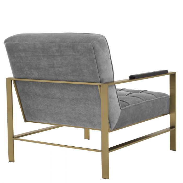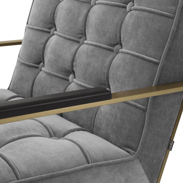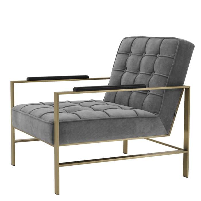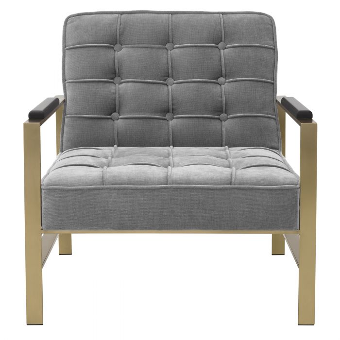 Fåtöljen Ernesto förenar modern design med hög stil och är full av charm. Den här läckra sittplatsen är full av elegant och sofistikerad känsla och kommer definitivt att vara din favoritplats i hemmet. Dess rektangulära ram har en finish i borstad mässing. Det varsamt vadderade sätet och ryggstödet är klädda i högkvalitativ klädsel och utsmyckad med läckra knappar.