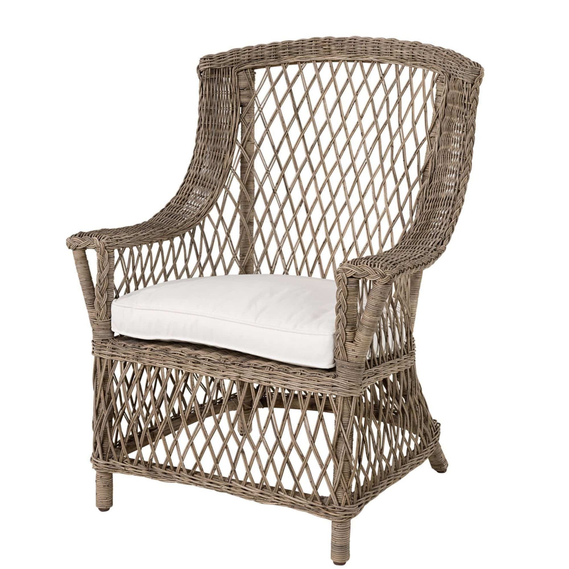 Snygg och rejäl, väl tilltagen fåtölj med en stomme i aluminium och högkvalitativ konstrotting. Dynorna har avtagbar klädsel och fåtöljen ger en härlig känsla av lyx och elegans. En fåtölj som håller i många år. Finns med tillhörande soffa och karmstol.