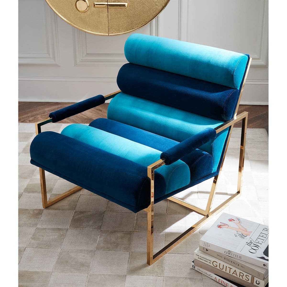 Minimalist comfort gets a modernist makeover—we’ve taken our definition of leaned-back luxury to the next level with our Channeled Goldfinger Lounge Chair. Ultra-comfy channeled cushions and plush arm rests complement its perfect pitch on a pared down, polished brass frame. A bold burnt orange velvet turns up the glam, alternating blues feel seaside chic, or a fresh textural finish takes neutral to the next level.