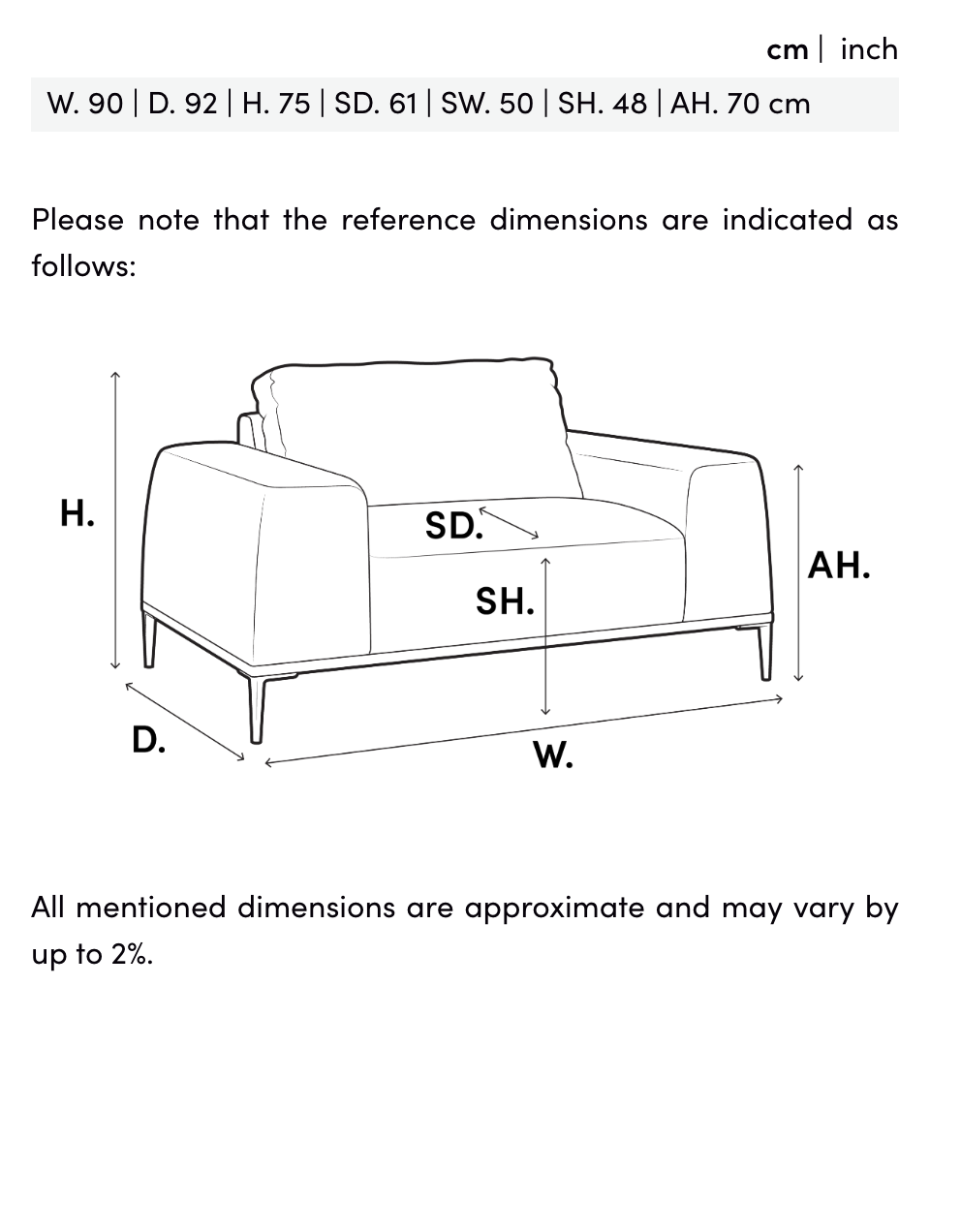 Måttspecifikationer: SD. 61|SW. 50|SH. 48|AH. 70 cm