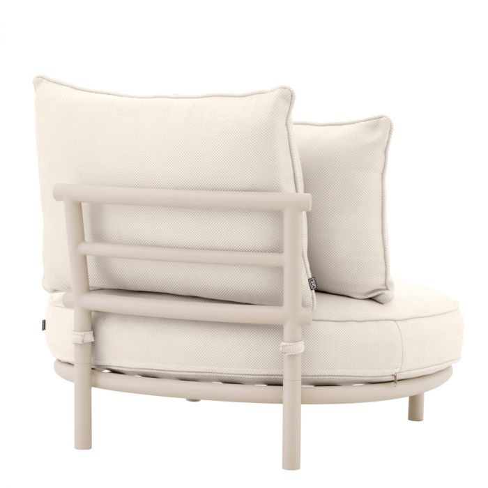 Här är fåtölj Laguno, en perfekt kombination av komfort och stil för din utomhusmiljö. Med sin sandfärgade yta som ger en naturlig känsla av kusten och det ljusgrå/krämfärgade tyget ger denna utomhusfåtölj en elegant touch till varje utomhusmiljö.