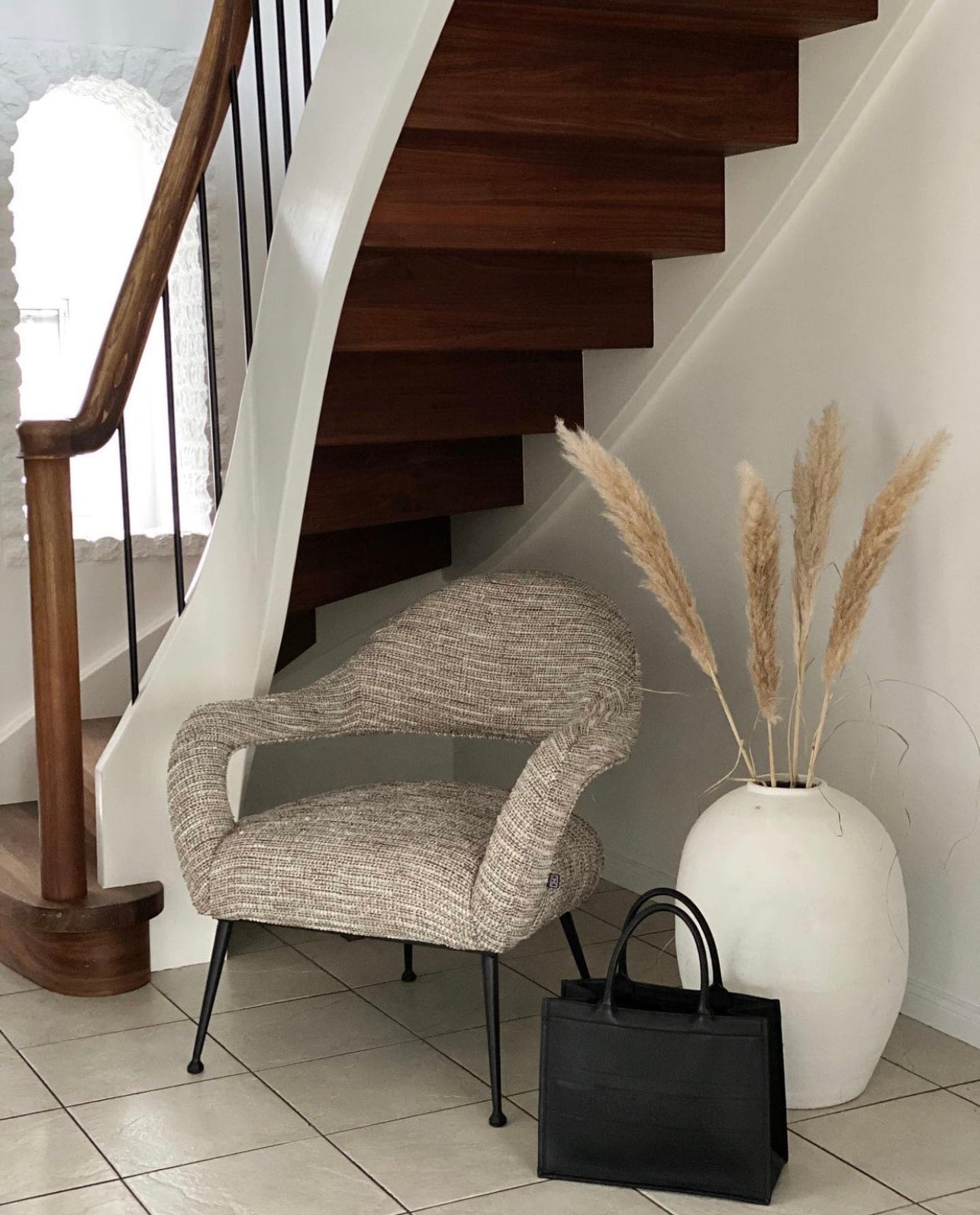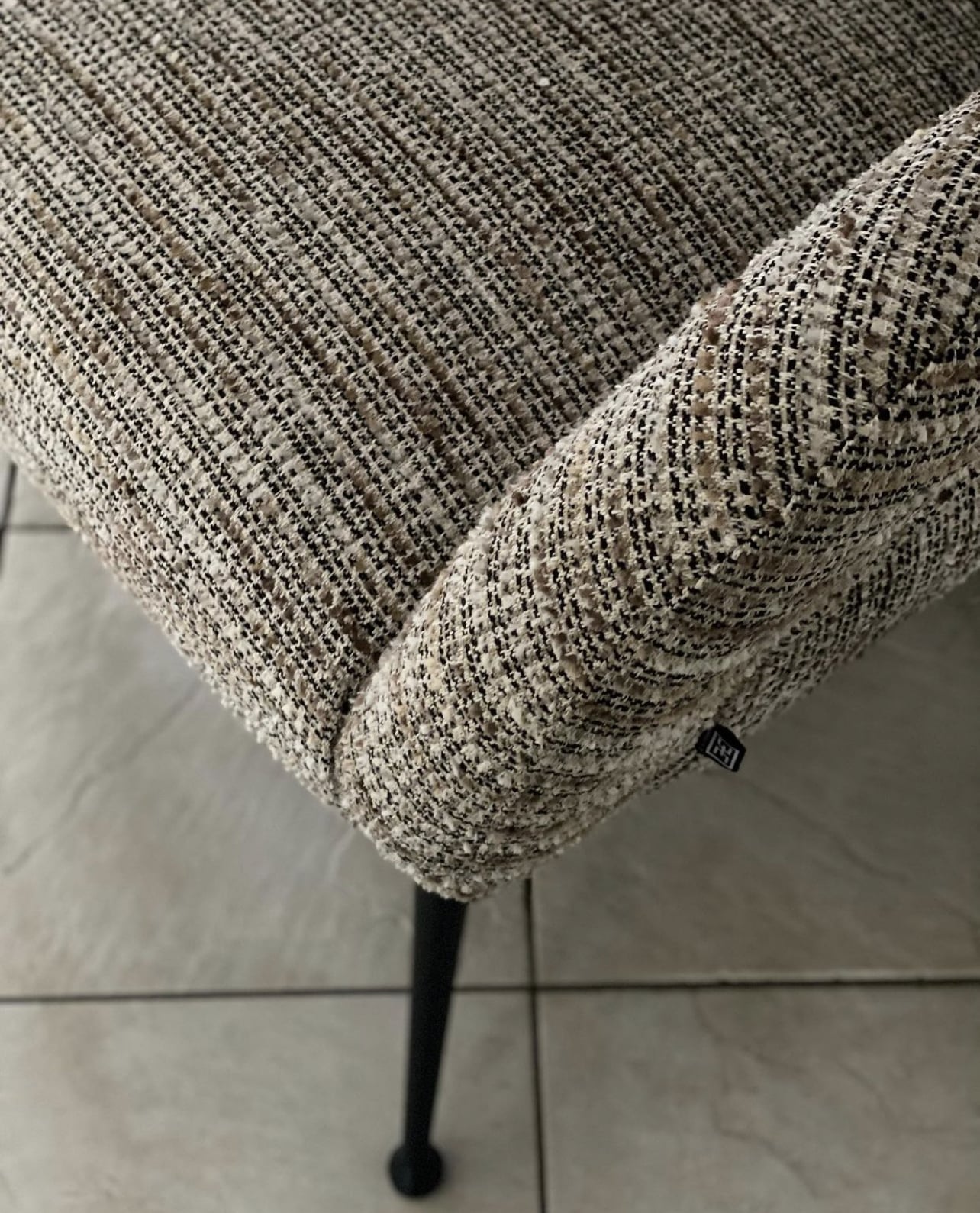 Fåtölj Lombard från Eichholtz är en mycket elegant fåtölj med härlig klädsel med rustika fibrer som syns och känns, samtidigt som man möter det strama i smala ben och minimalistisk design.