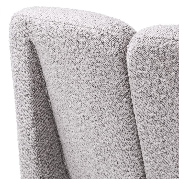 Med graciösa linjer och smala proportioner, sprider den läckra fåtöljen Macintosh ett tidlöst uttryck. Formad utan avbrott i designen framkallar den originaliteten hos 1960-talsmöbler, medan det delade ryggstödet ger en lekfull accent i det läckra grå Bouclé-tyget.