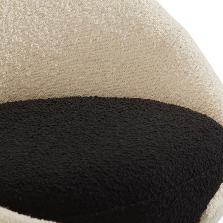 Designfåtölj Marais är den perfekta kombinationen av svart och vitt – välbekant men ändå nyskapande, chic och grafiskt slående. Med sin klassiska kapselform och en fascinerande skulptural delning, klädd i tvåtonad bouclé, blir denna möbel en balansakt mellan modern komfort och konstnärlig uttrycksfullhet.
