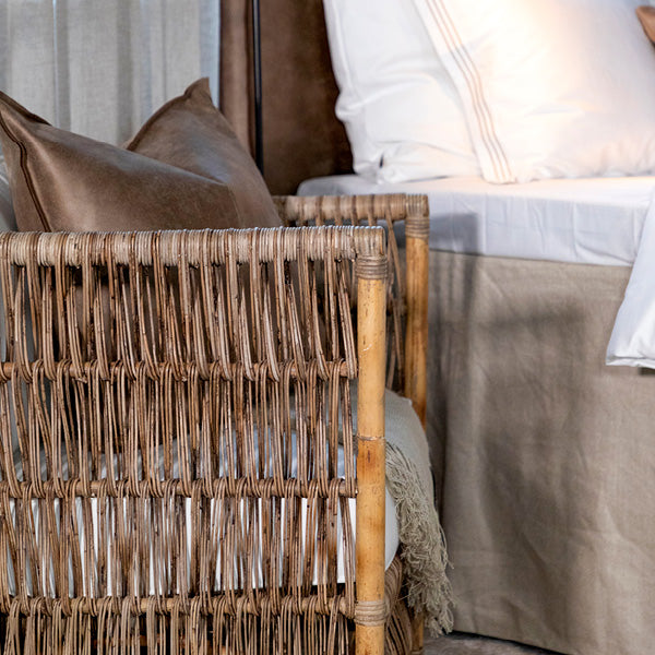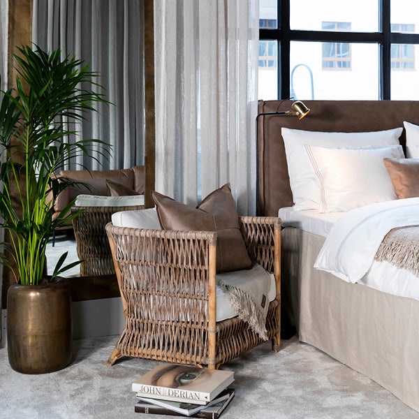 Mauro är en naturfärgad korgstol som kombinerar klassisk charm med praktisk funktion. De höga armstöden och den ergonomiska utformningen skapar en bekväm och avslappnad sittupplevelse för långa stunder av avkoppling.